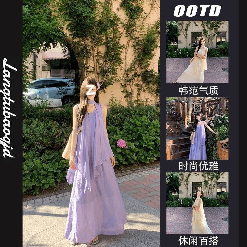 新款套装度假风套装法式飘带不规则背心女装夏季吊带连衣裙两件套