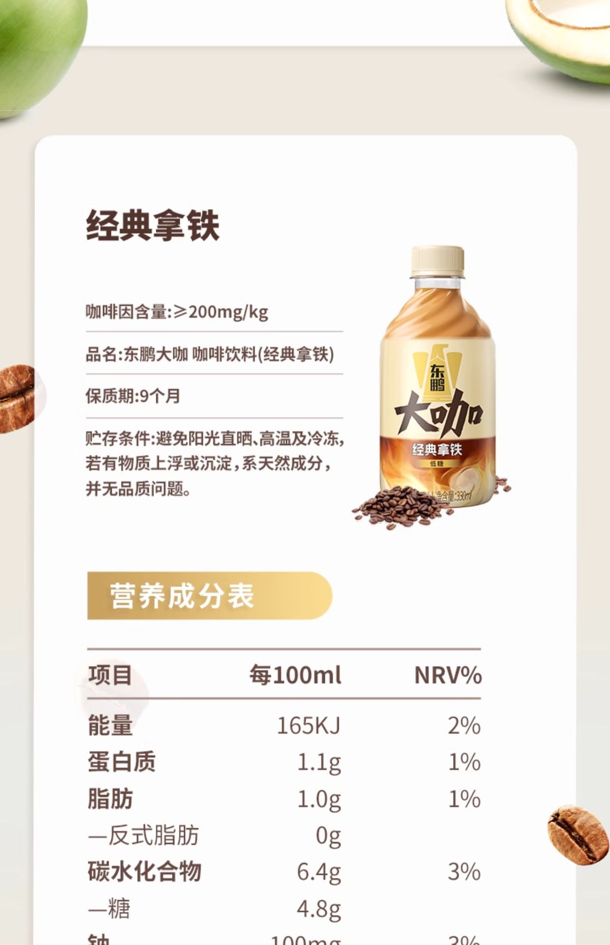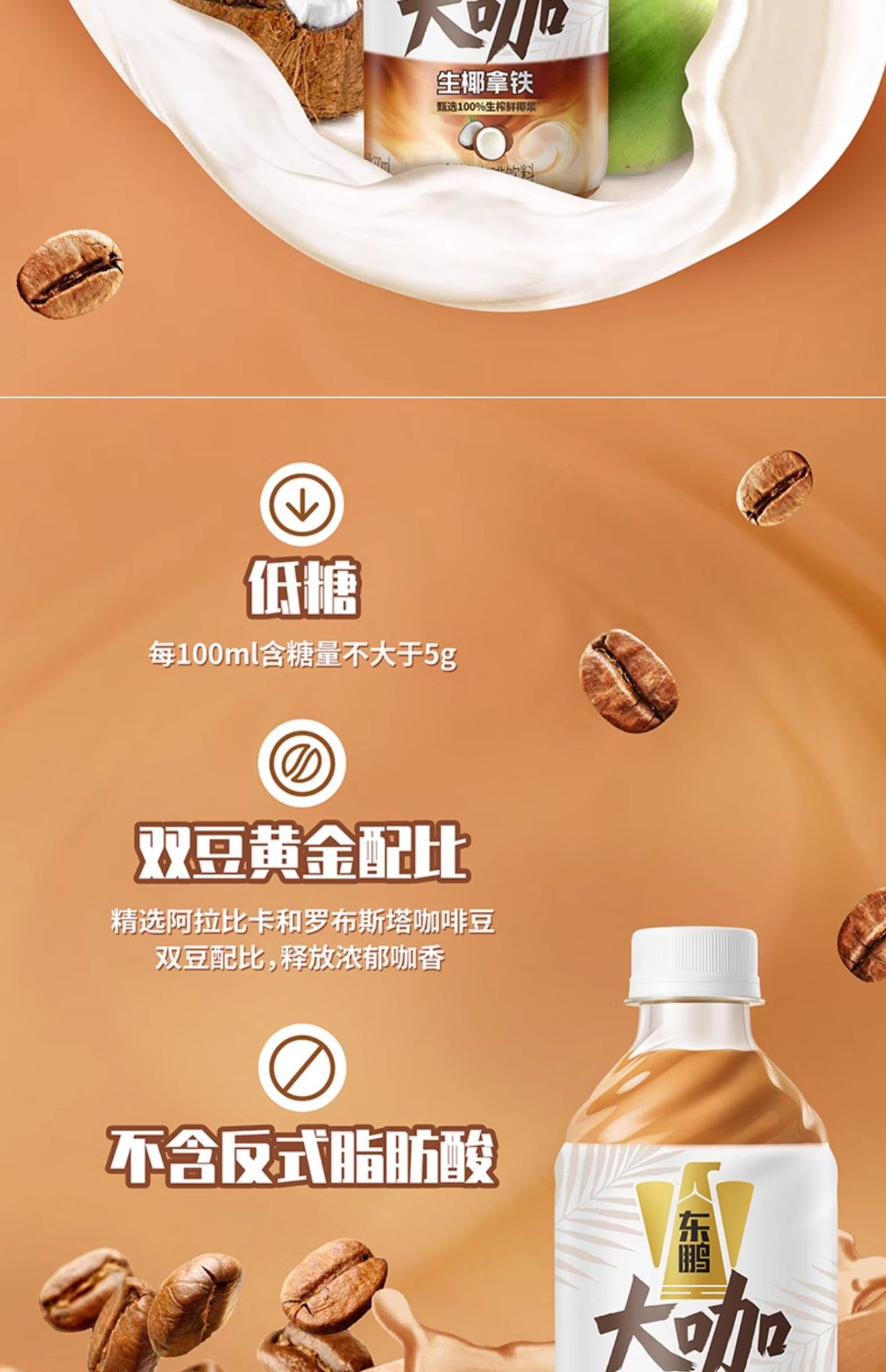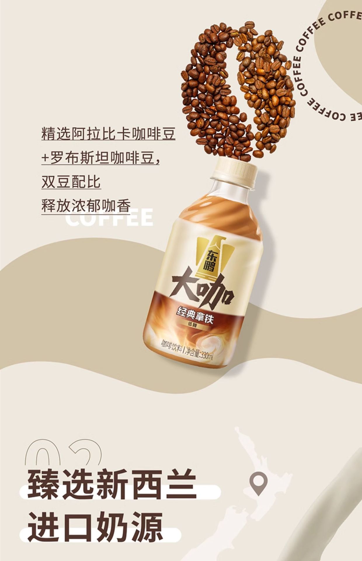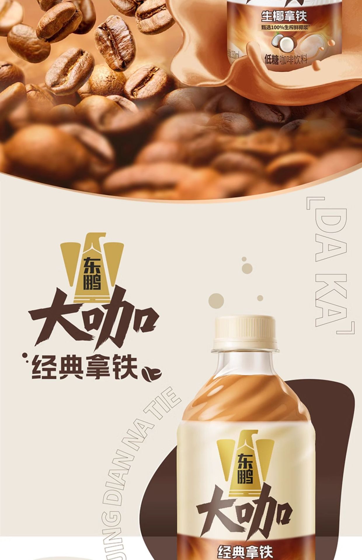东鹏大咖生椰拿铁330ml瓶装低糖即饮香浓咖啡饮料提神不换奖12月