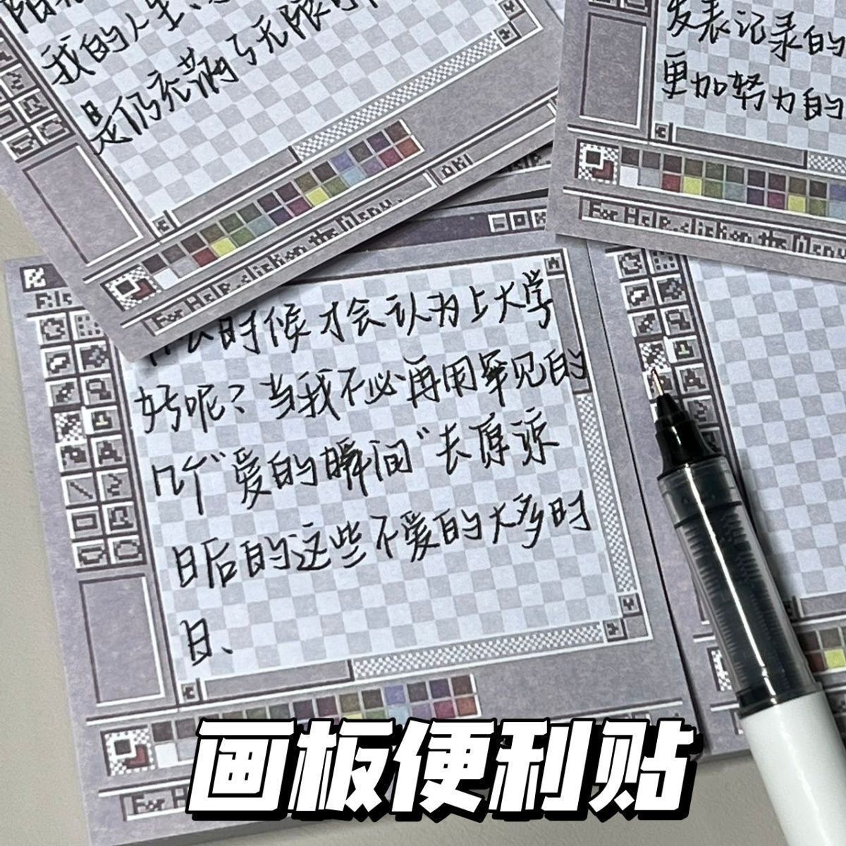 レトロなコンピュータの画板を描いて付箋を貼ります。