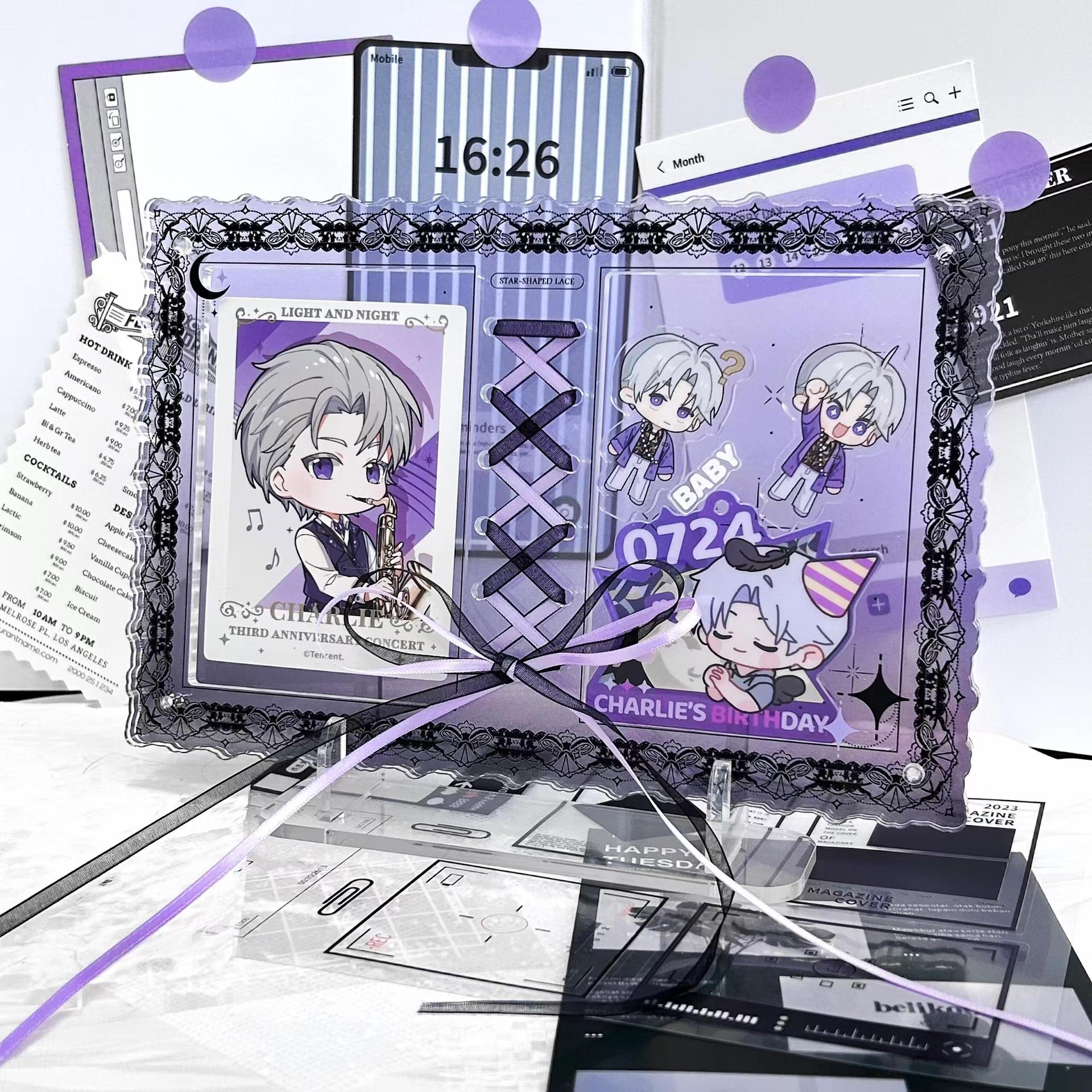 小紅書レースアクリルフォトカードホルダー、スターフォトフレーム、卓上飾り、芸能人グッズ