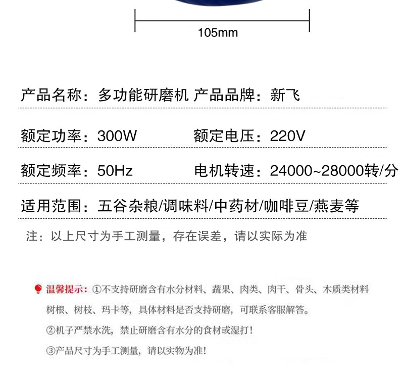 新飛粉砕機家庭用粉砕機多機能五穀調味料漢方薬料理研磨機粉砕機