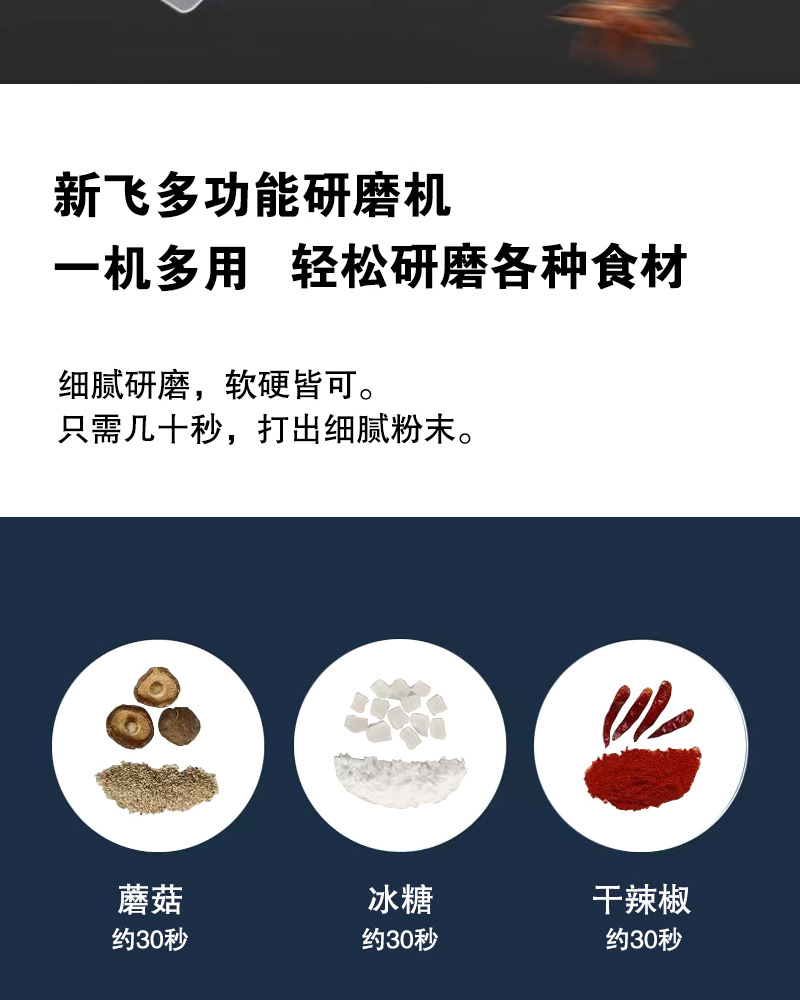 新飞打粉机研磨机干湿两用粉碎磨粉机粉超细耐用可水洗商用料理机