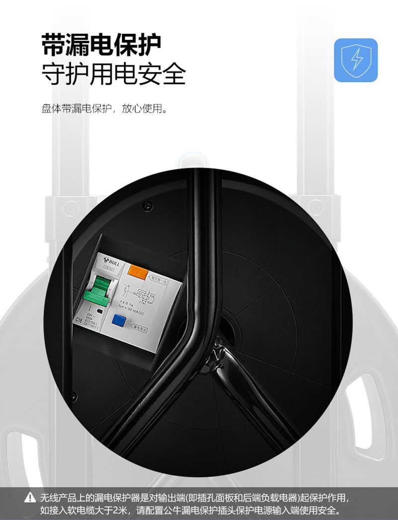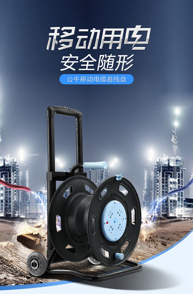 公牛线盘电缆绕线卷线盘工程移动线轴拖线滚空盘30米50M带漏保16A