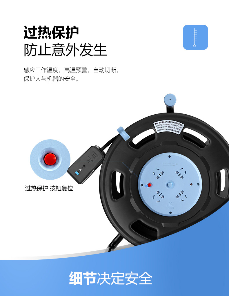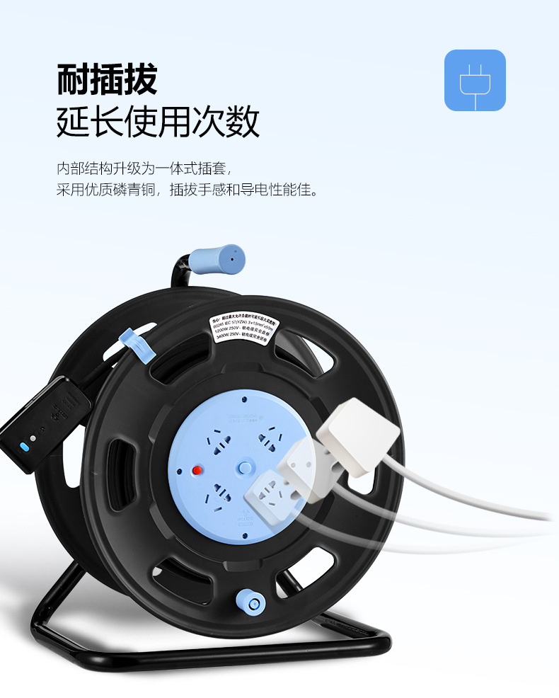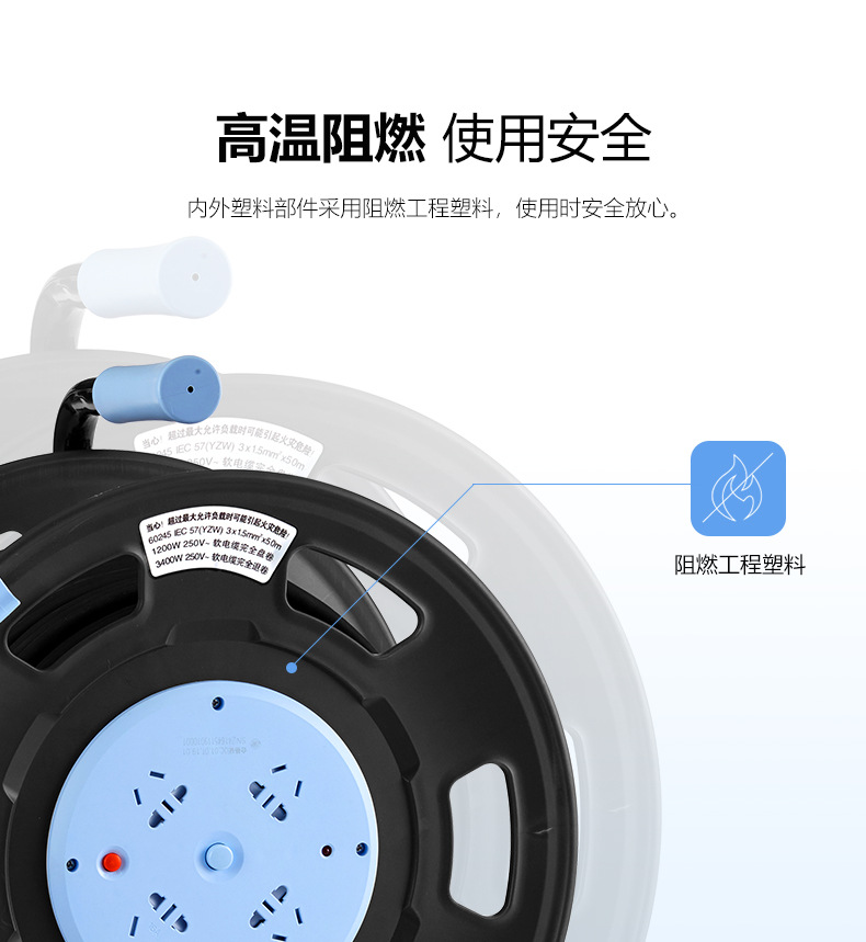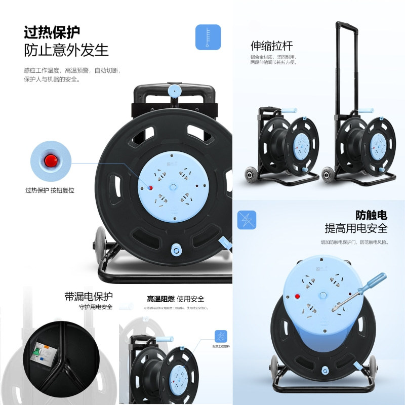 ブルーモバイルケーブルリール全シリーズ多機能、断熱材付き漏電保護コンセント、純正