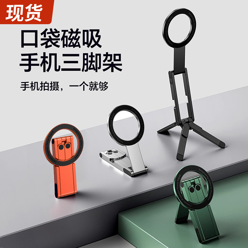 现货手机磁吸三脚架手持拍摄桌面摄影拍照直播便携折叠铝合金支架