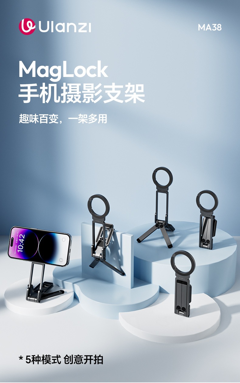 8Ulanzi优篮子 MA38便携MagLock登山扣手机摄影支架三脚架磁吸