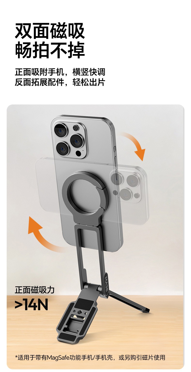 Magsafe登山扣三脚架 N52强磁可折叠便携式手机支架