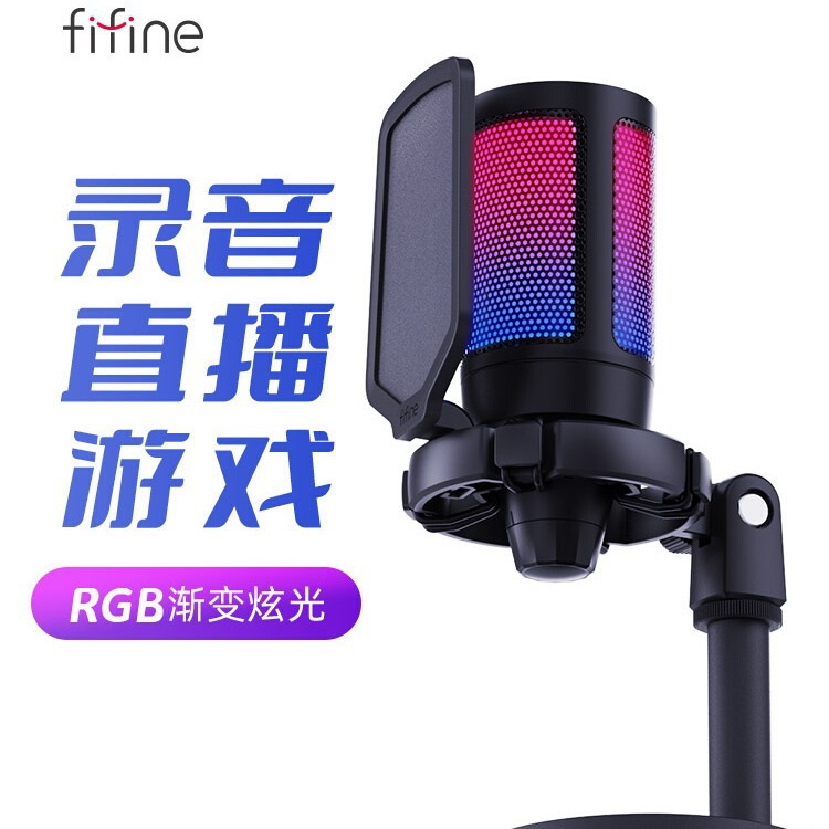 フィファインA6コンデンサーマイクRGBランプ効果パソコンデスクトップノート録音ゲーム電競生中継録音歌