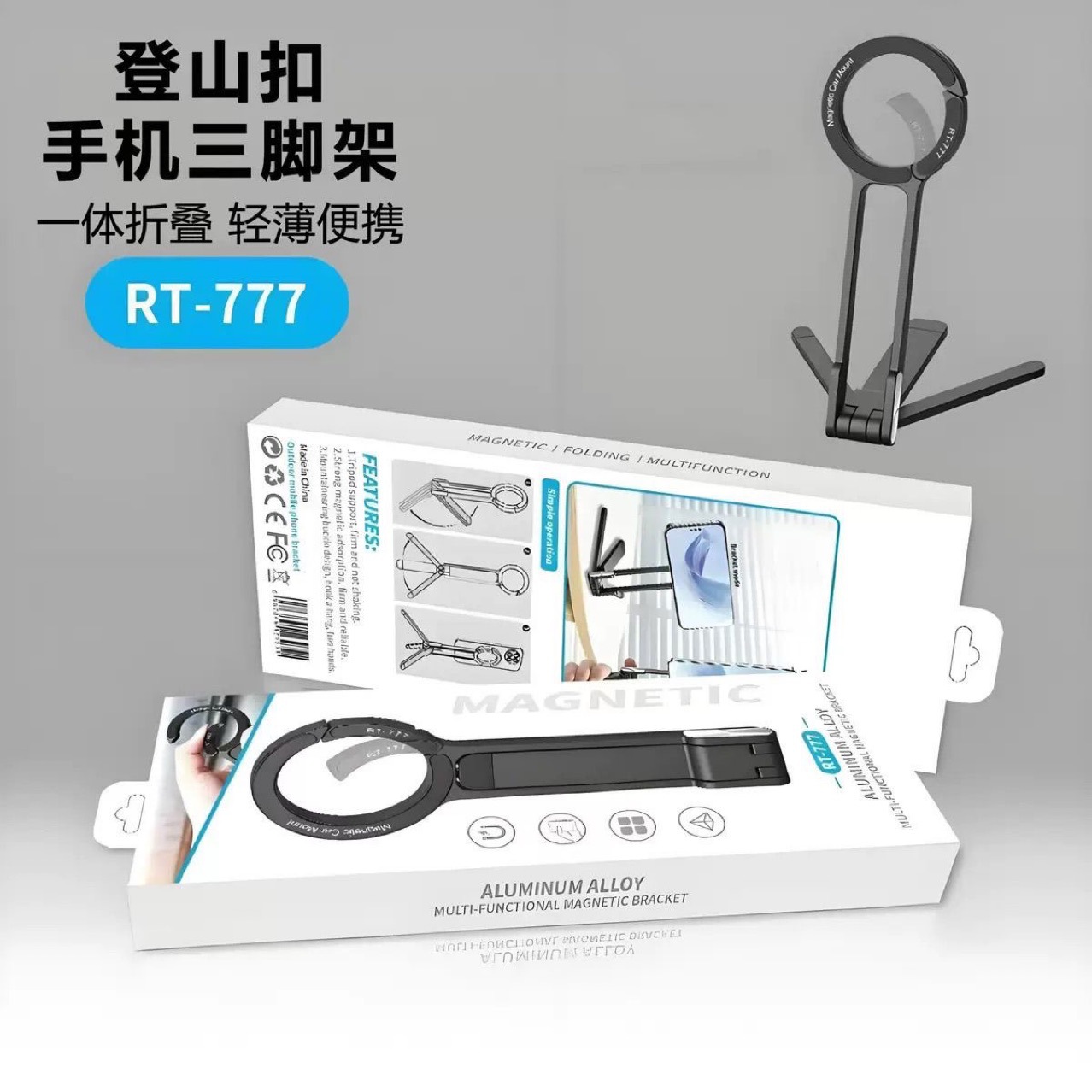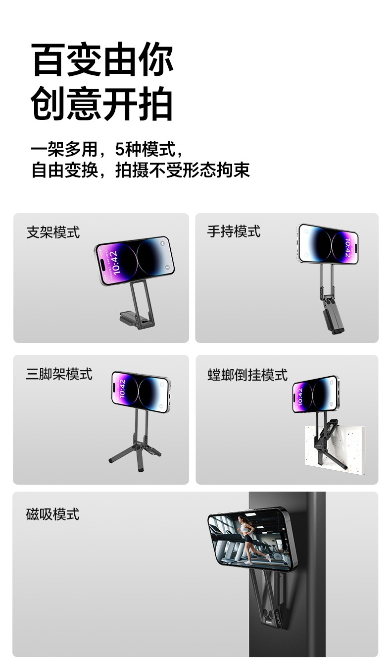 登山扣外贸款手机支架便携摄影拍照多功能横竖三脚架扩展光灯磁吸