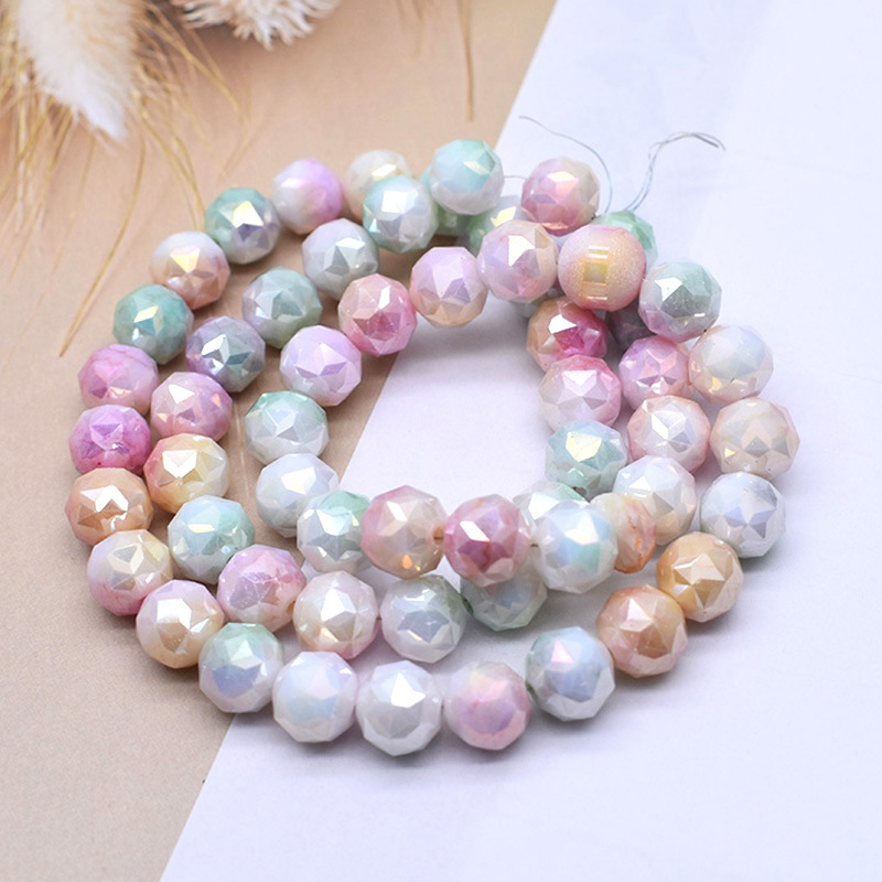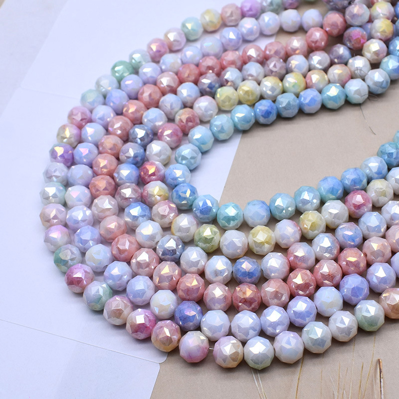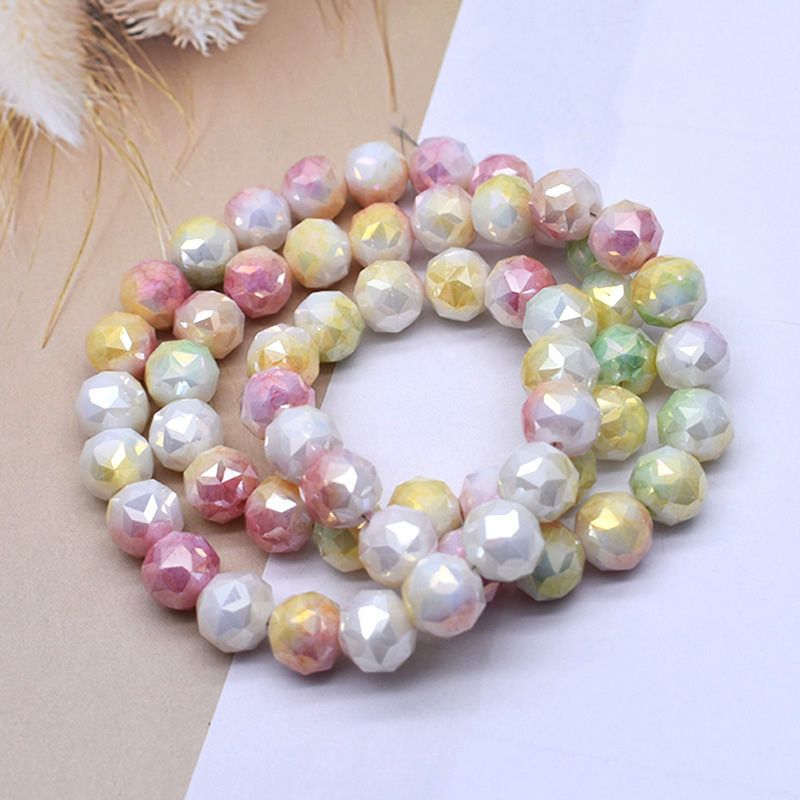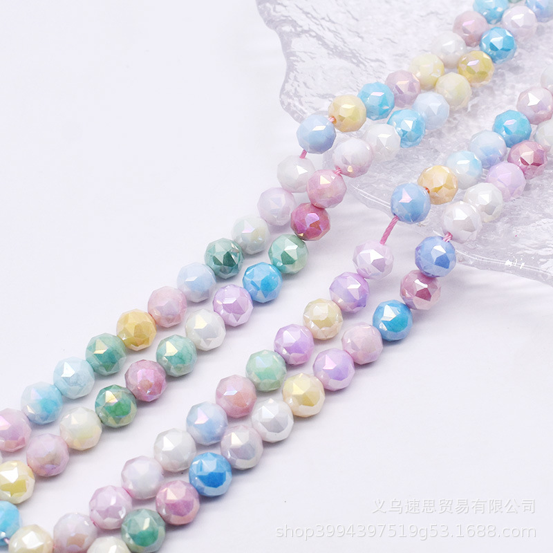 8mm水染花球圆珠diy饰品配件切面彩色玻璃串珠手机链项链散珠材料