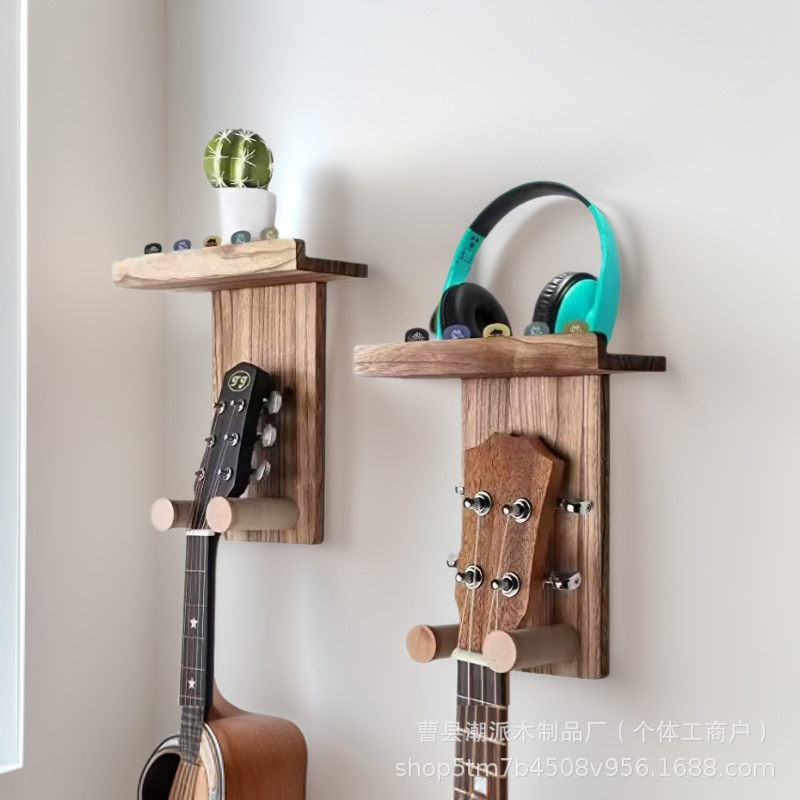 木质吉他置物架壁挂式墙上实木挂架电吉他琴架吉他拨片收纳架厂家