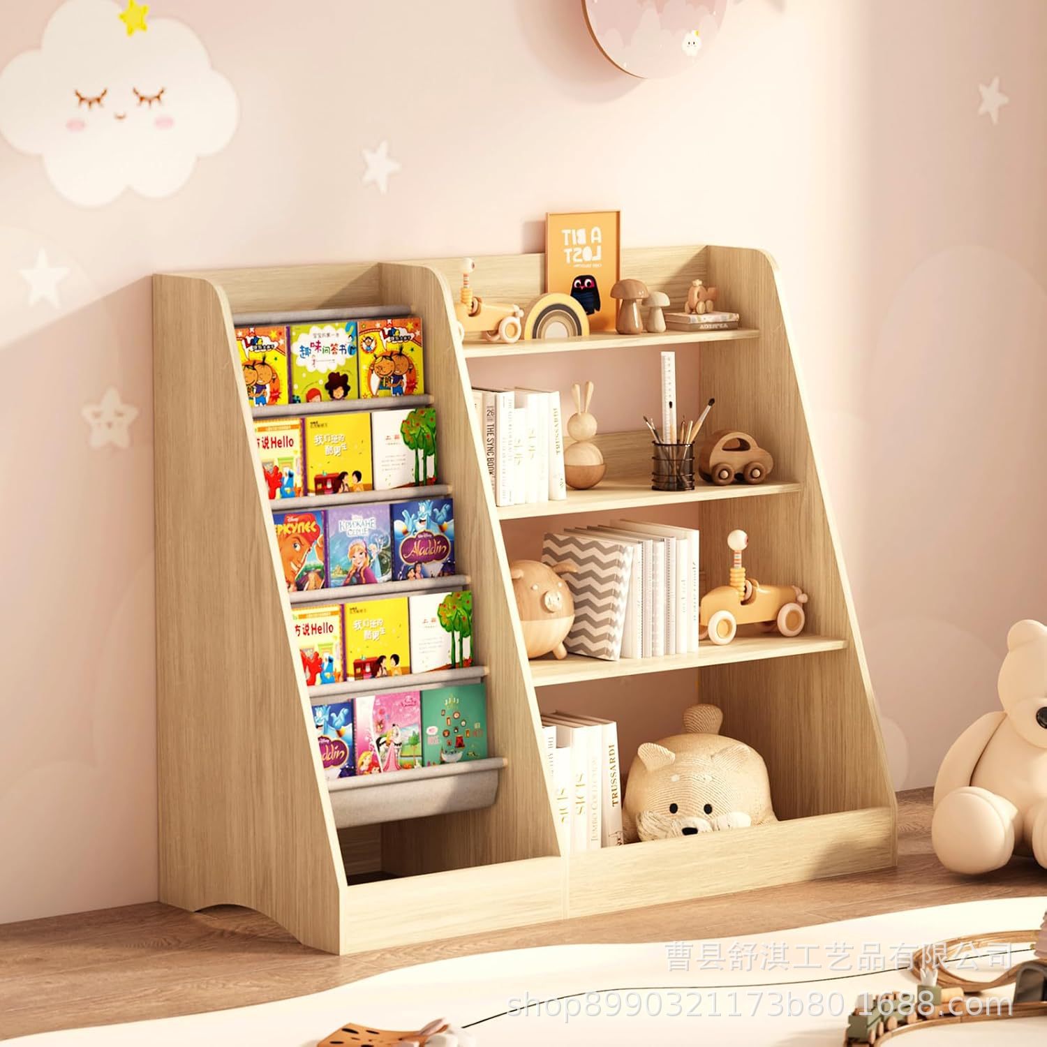 クロスボーダー子供用本棚おもちゃ収納ラック新聞ラック本棚新聞ラック床置き木製多層ディスプレイ収納キャビネット