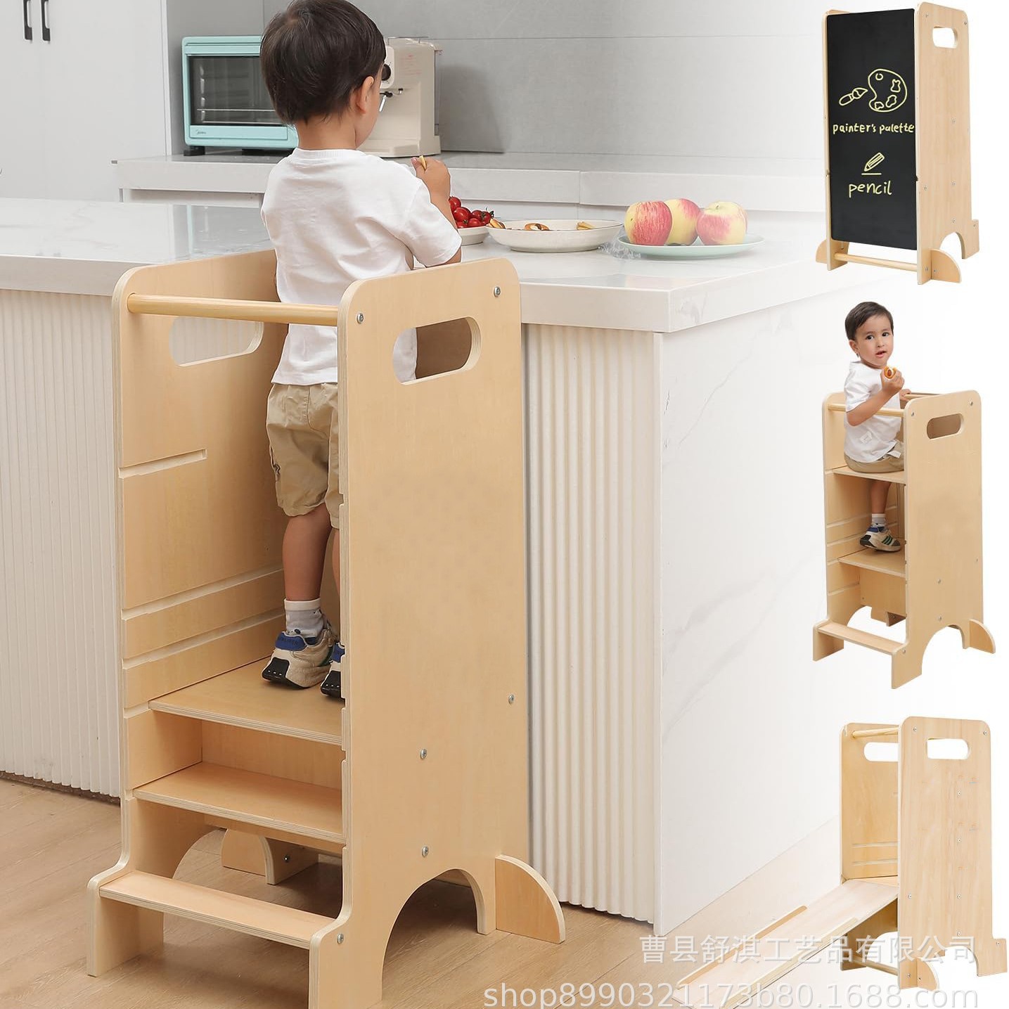 現物木製学習塔黒板付き児童腰掛け3合1児童折り畳み手洗い腰掛け台所助手足踏み台