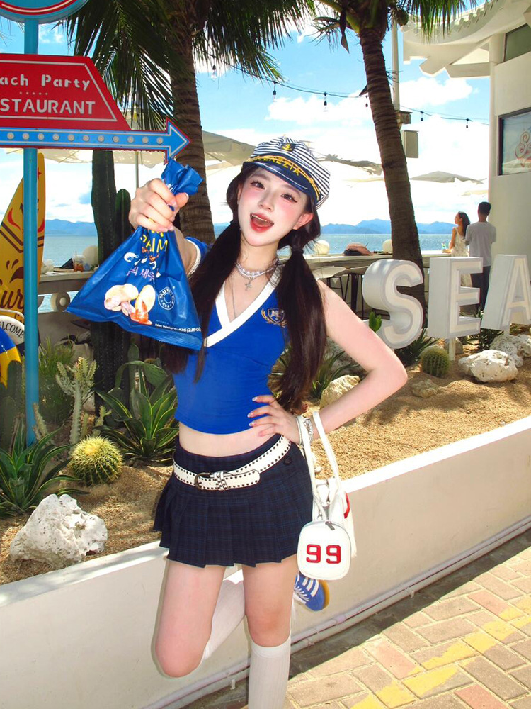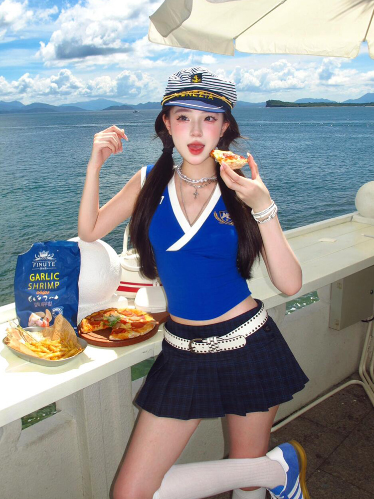 蓝色条纹海军帽夏天海边度假风大帽檐帽子女款防晒遮阳水手帽日系