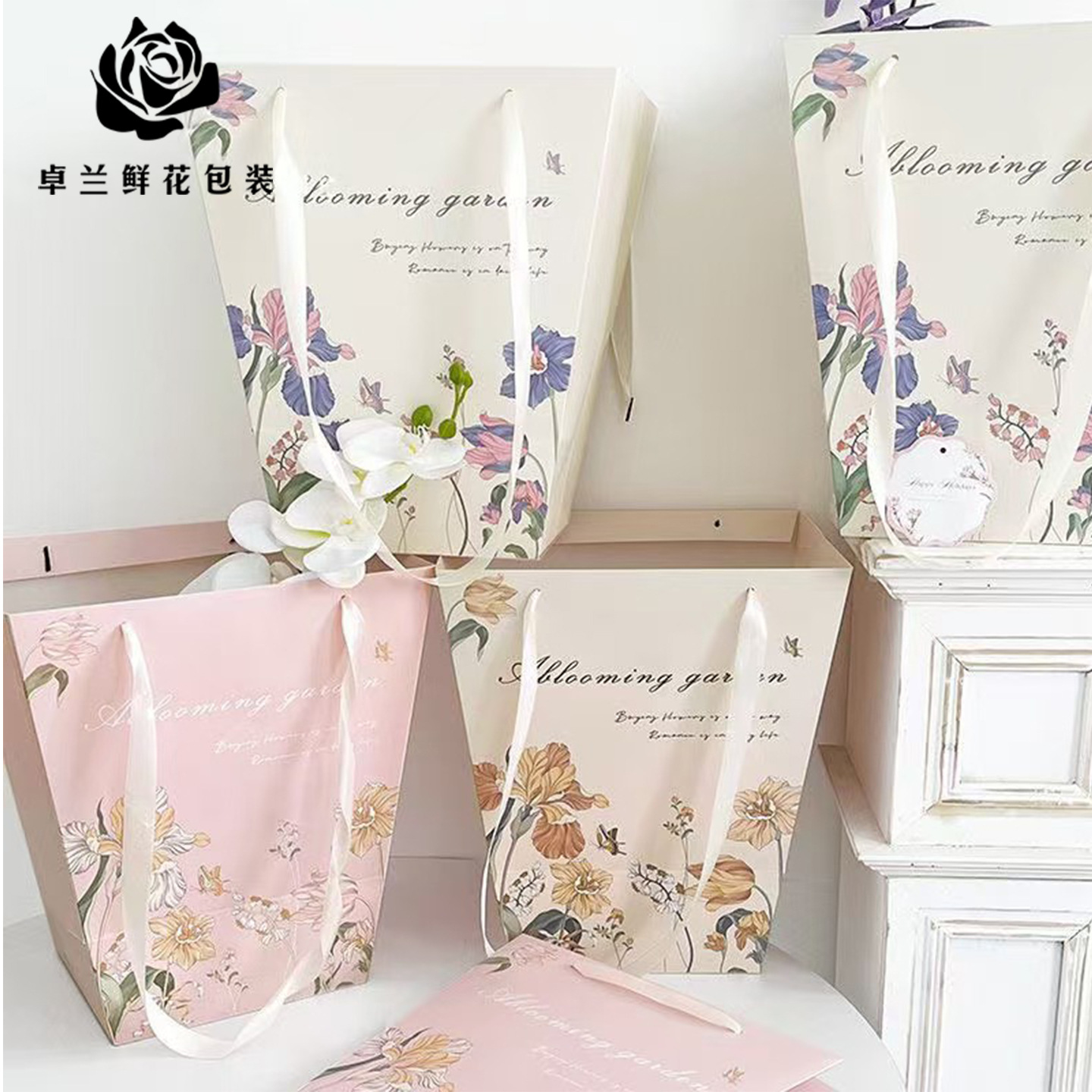 卓兰鲜花手提袋油画风手拎袋加厚大尺寸纸袋花束打包手工diy材料