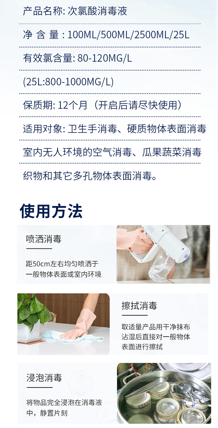 次亜塩素酸消毒液は家庭を洗って清潔にして母子の室内外のペットを消毒して100ml殺菌します。