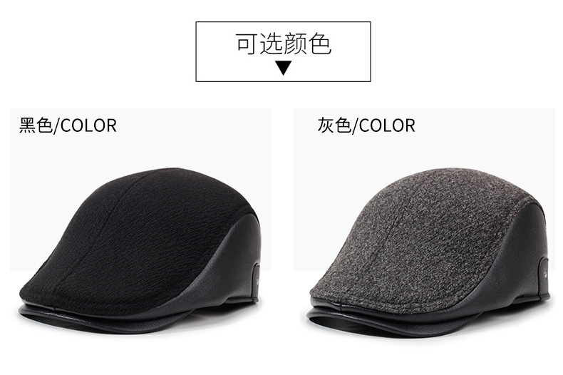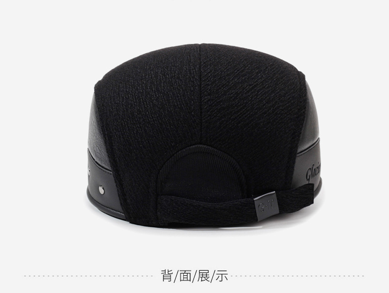 帽子男秋季冬毛呢帽子百搭鸭舌帽中老年人加厚保暖护耳老头棒球帽