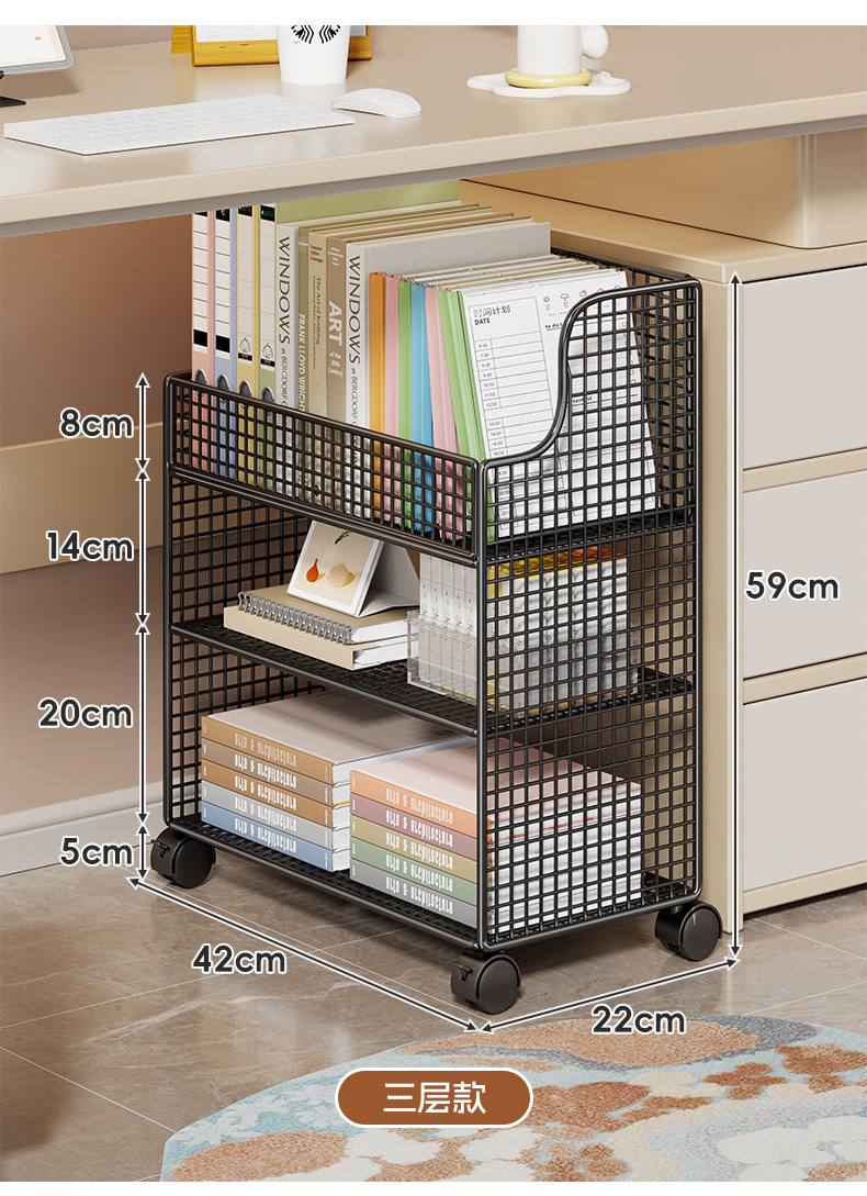 桌下书包置物架书桌旁小书架可移动带轮办公桌边推车书本收纳书柜