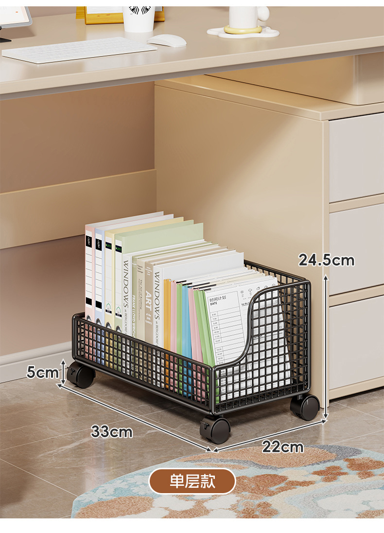 桌下置物架书架学生可移动工位滑轮小推车办公室桌旁书本收纳整理