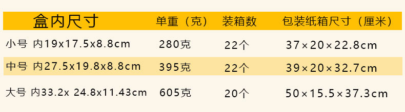 小号 20.32*18*9cm,大号 35*25.4*11.43cm,中号 29.21*20.32*9cm