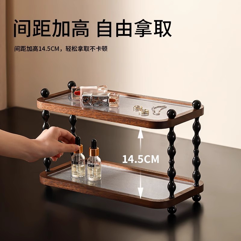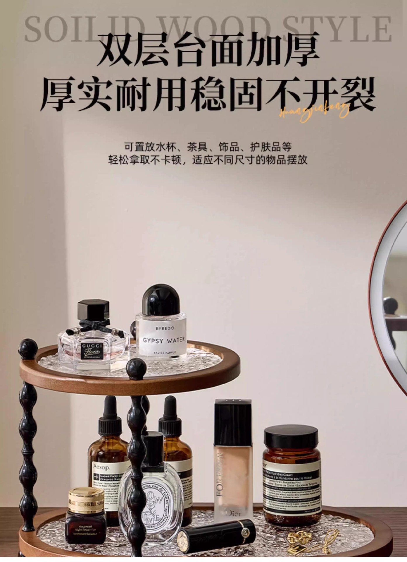 复古实木桌面梳妆台护肤品置物架多层口红香水化妆品收纳整理架