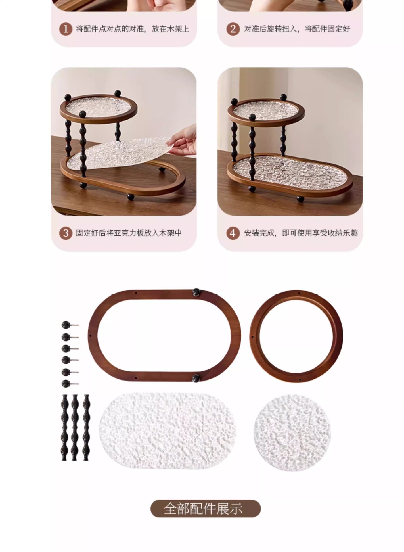 颜色 双层椭圆置物架【石头纹】,双层椭圆置物架【海棠花】