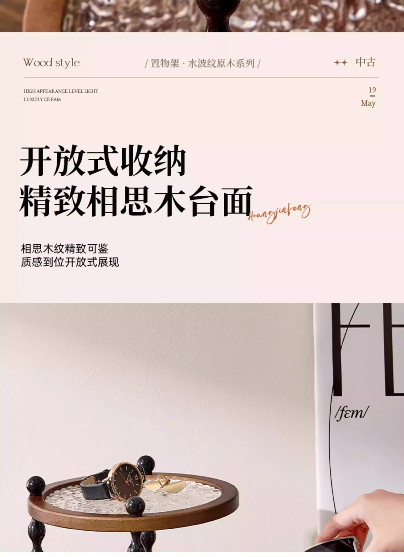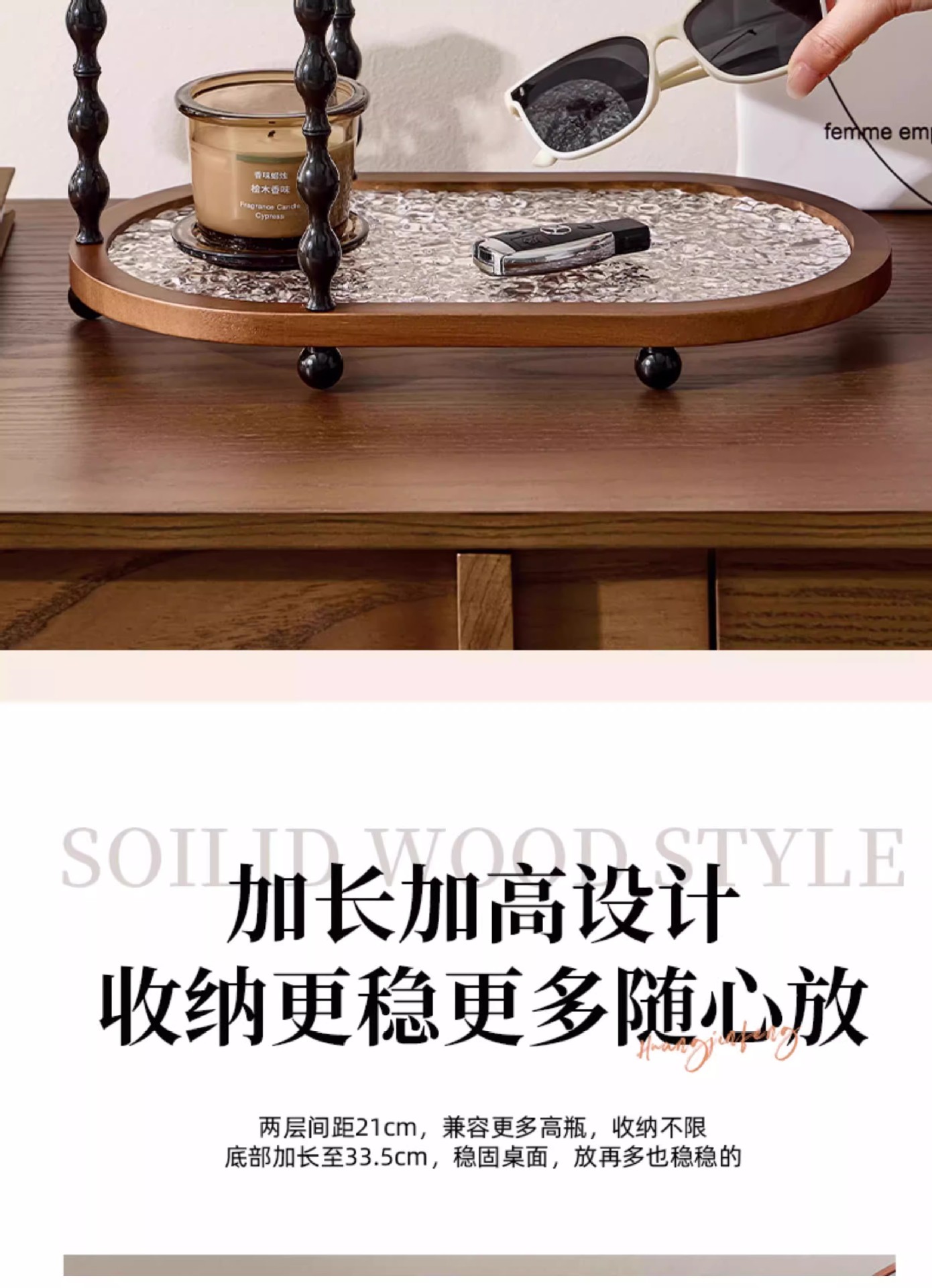 雰囲気のあるフランスの胡桃の木の中古風の収納棚は軽くて豪華で高級感のあるデスクトップの香水の多機能の物置棚です。