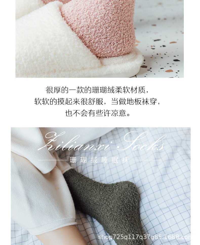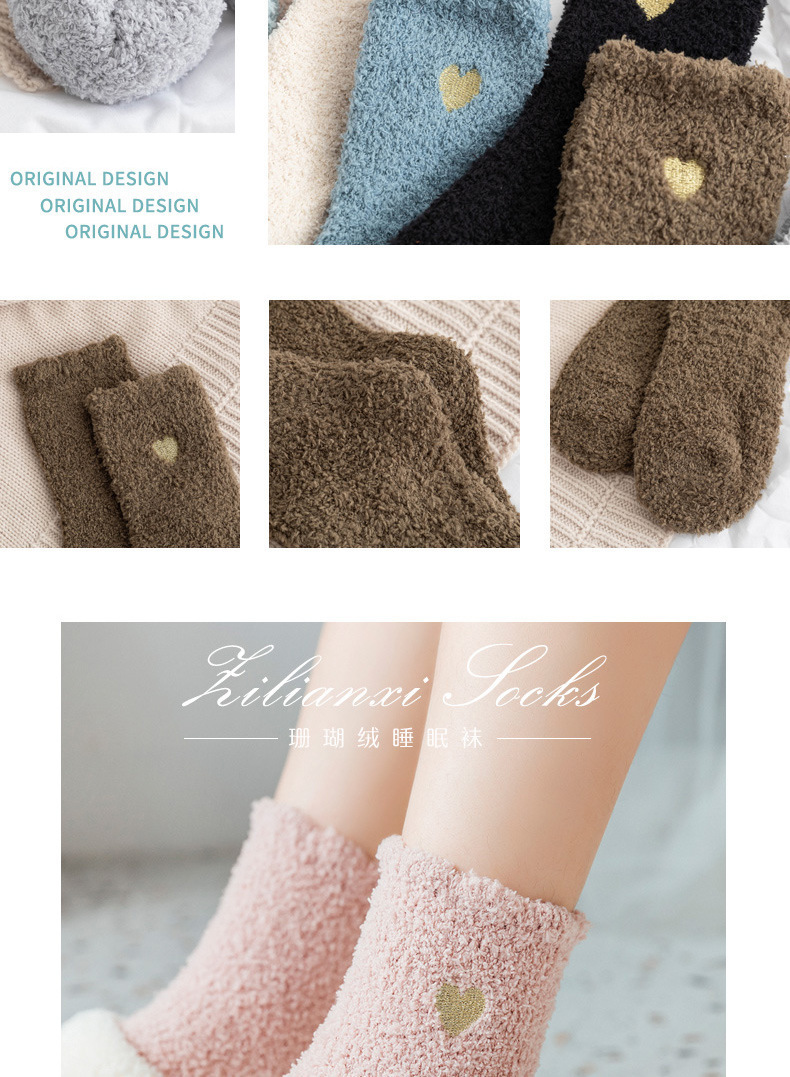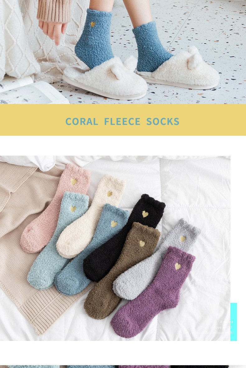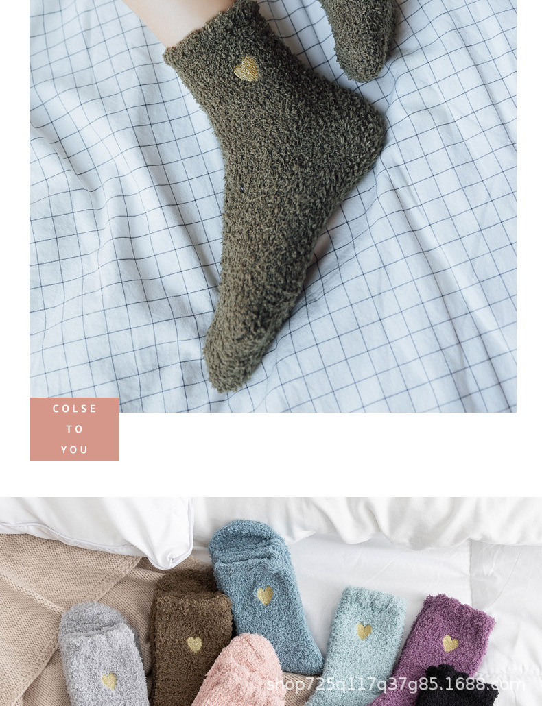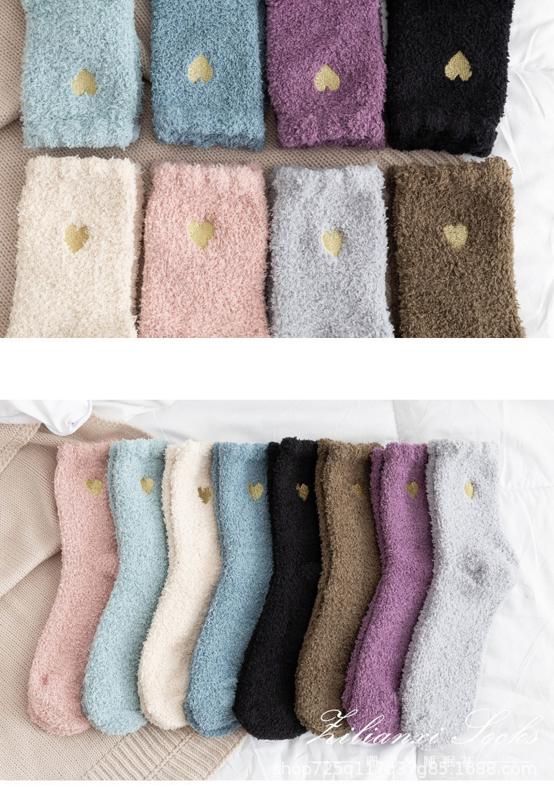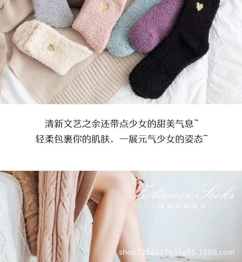 不掉毛跨境刺绣爱心珊瑚绒加绒加厚秋冬袜子女中筒保暖地板袜睡眠