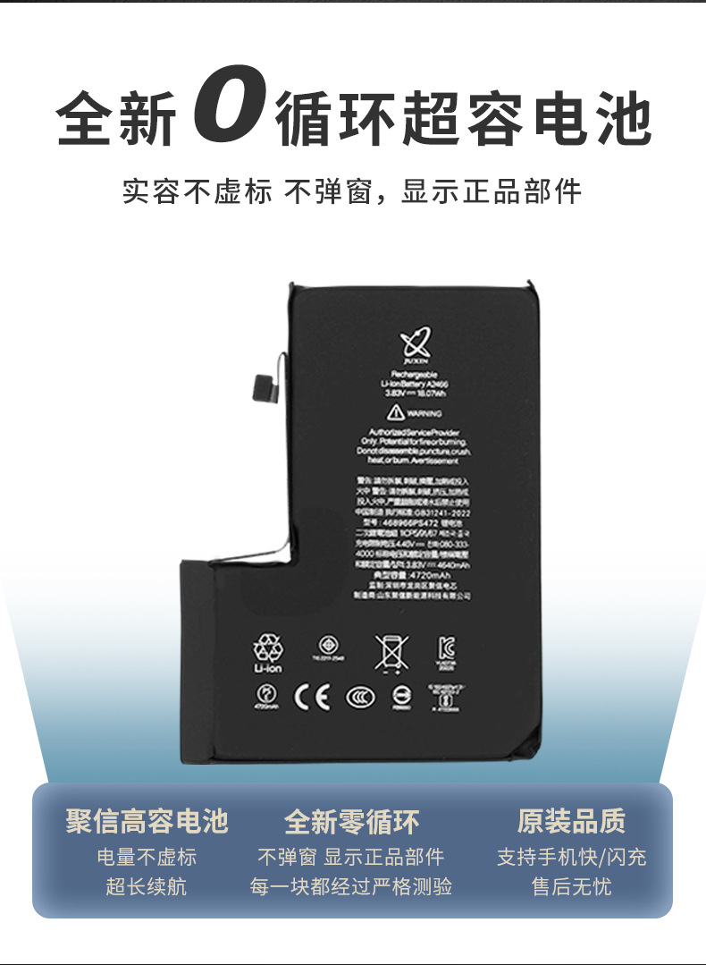 聚信電池は、Apple 12携帯電話のバッテリーに適しており、超大容量で、ポップアップウィンドウが表示されないリチウム電池です。メーカーから卸売で高容量のリチウム電池を提供しています。