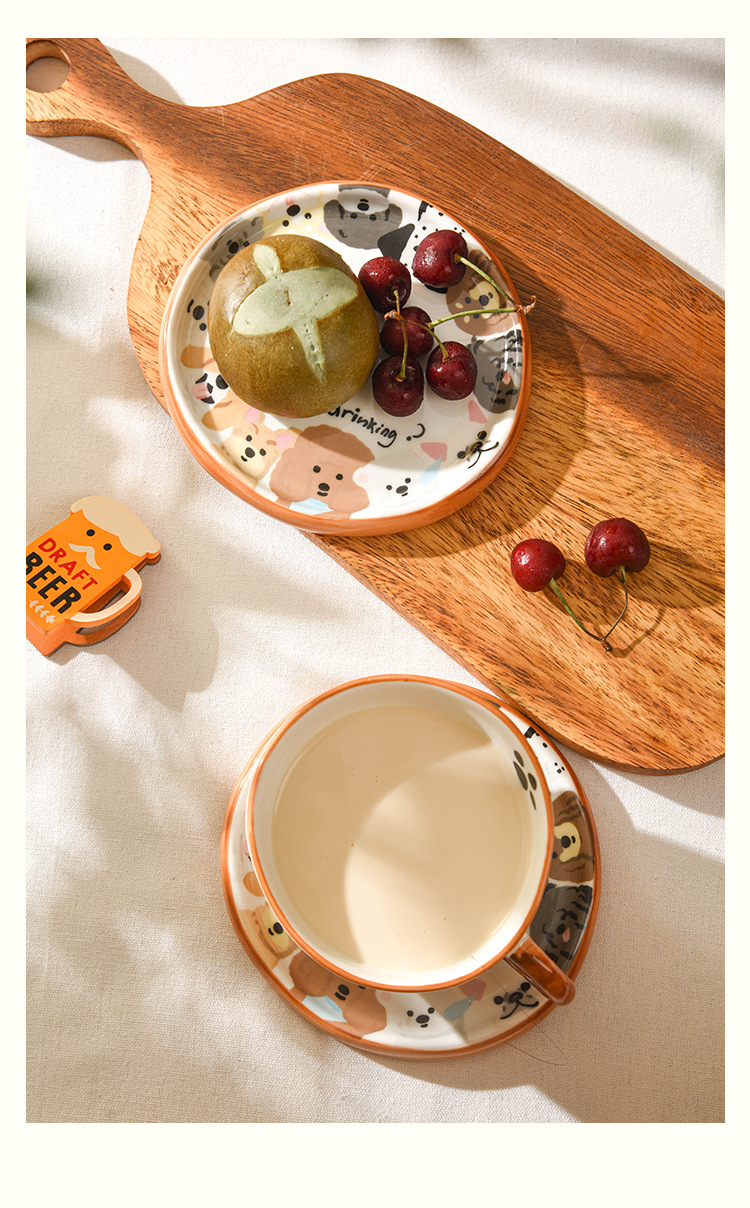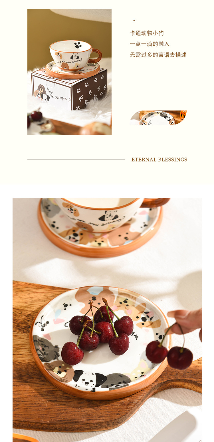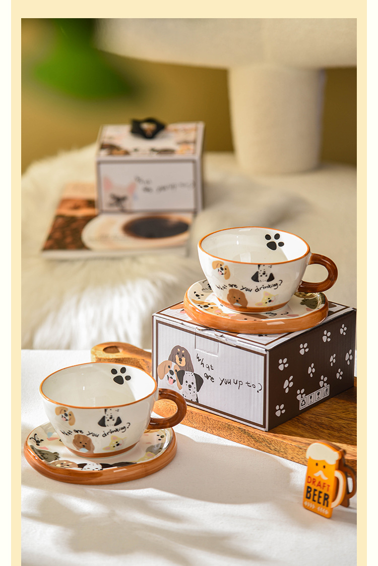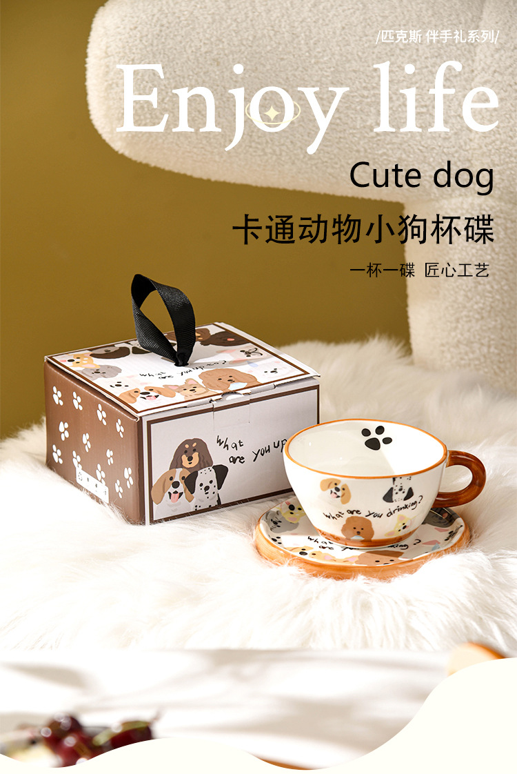 インスタ风キャラメル子犬コーヒーカップセラミックギフトボックスセット高颜値手描き漫画カップ皿カップお土産