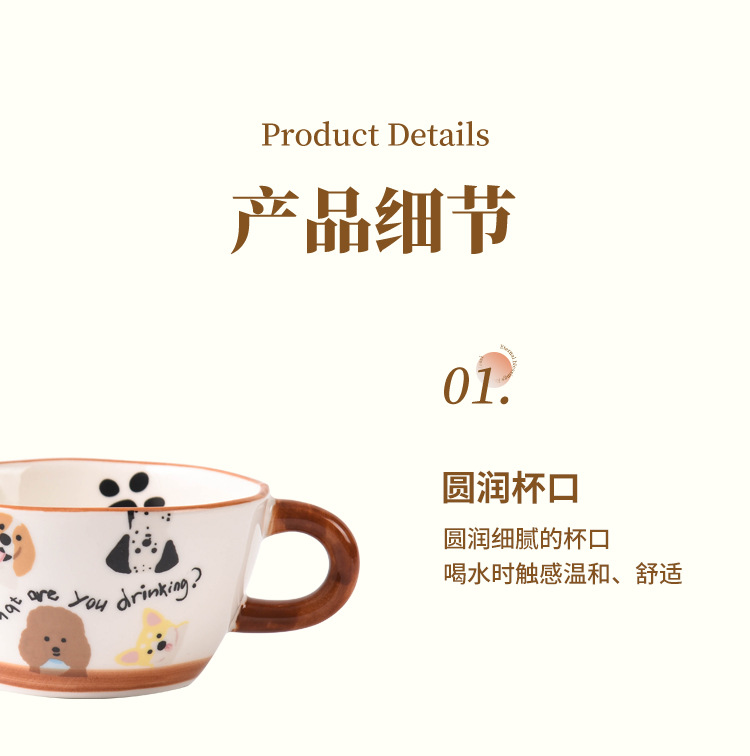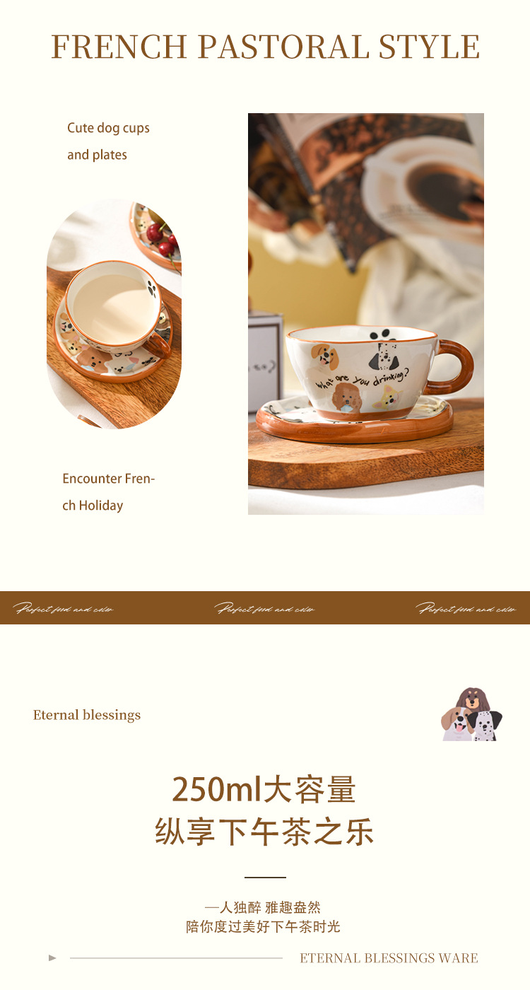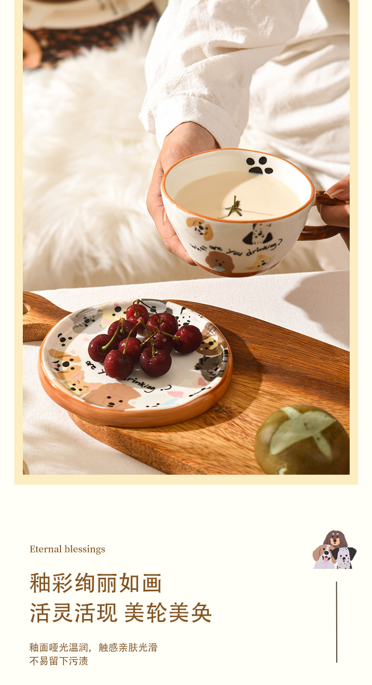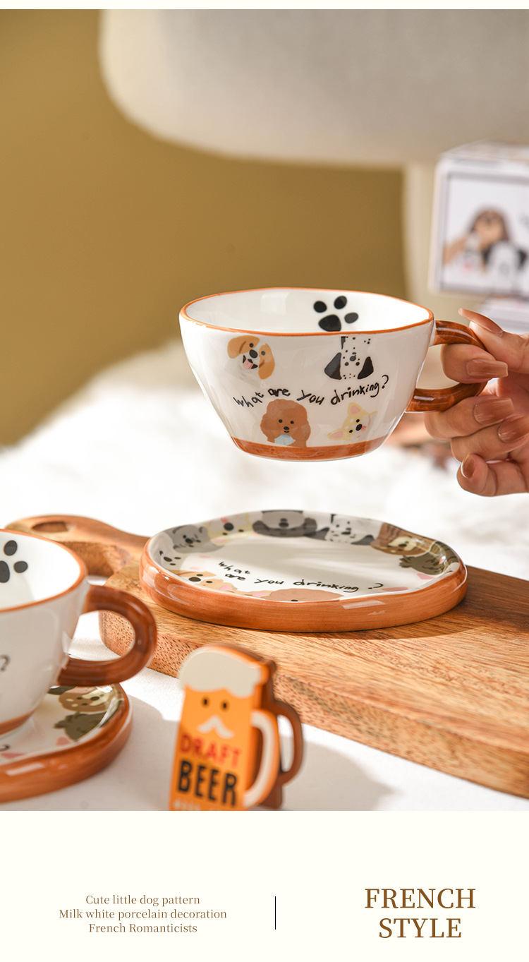 インスタ风キャラメル子犬コーヒーカップセラミックギフトボックスセット高颜値手描き漫画カップ皿カップお土産