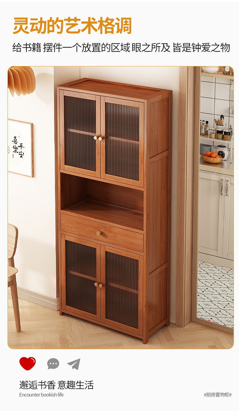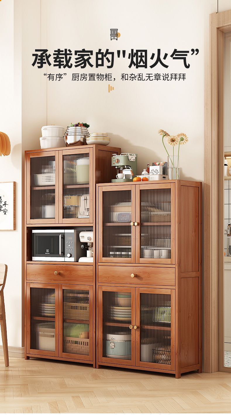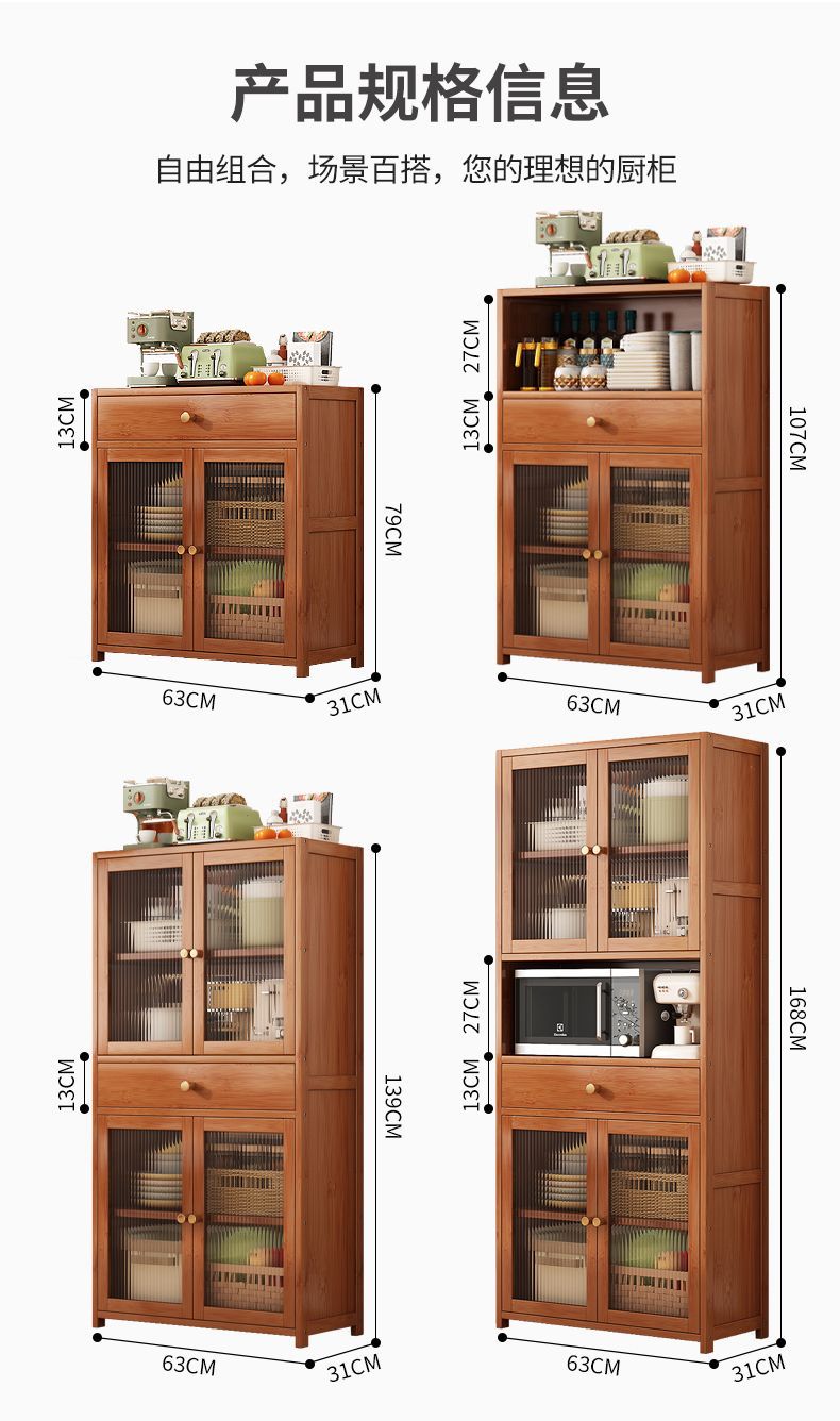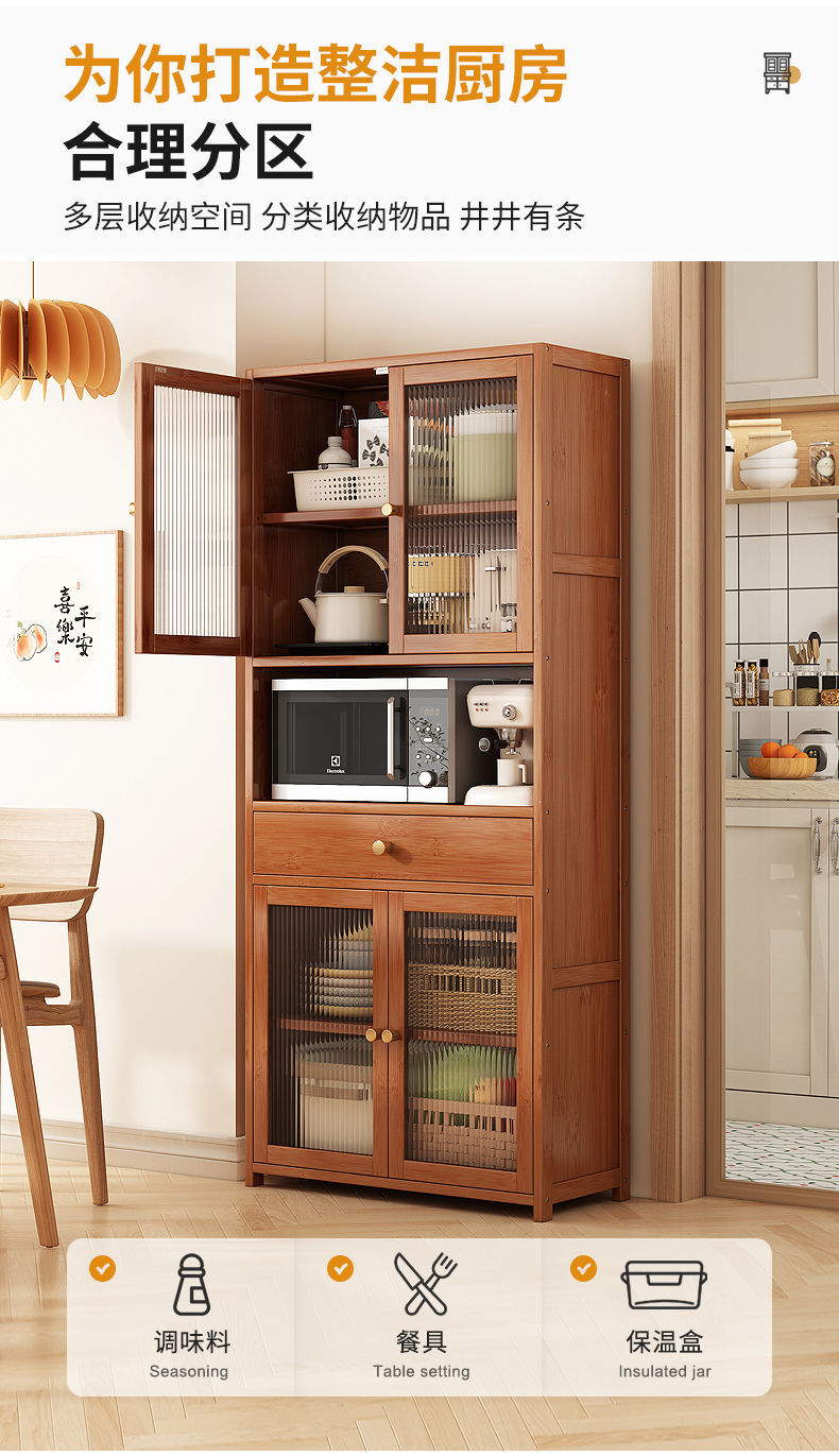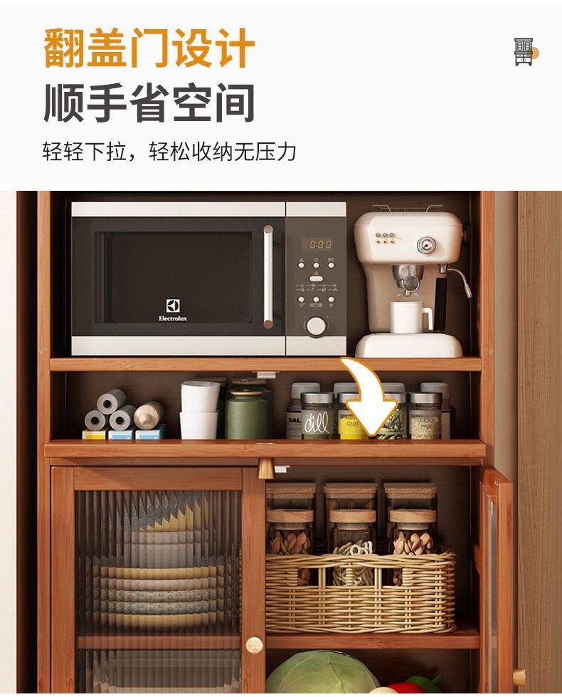 实木餐边柜落地家用置物架靠墙一体收纳柜厨房微波炉置物柜茶水柜
