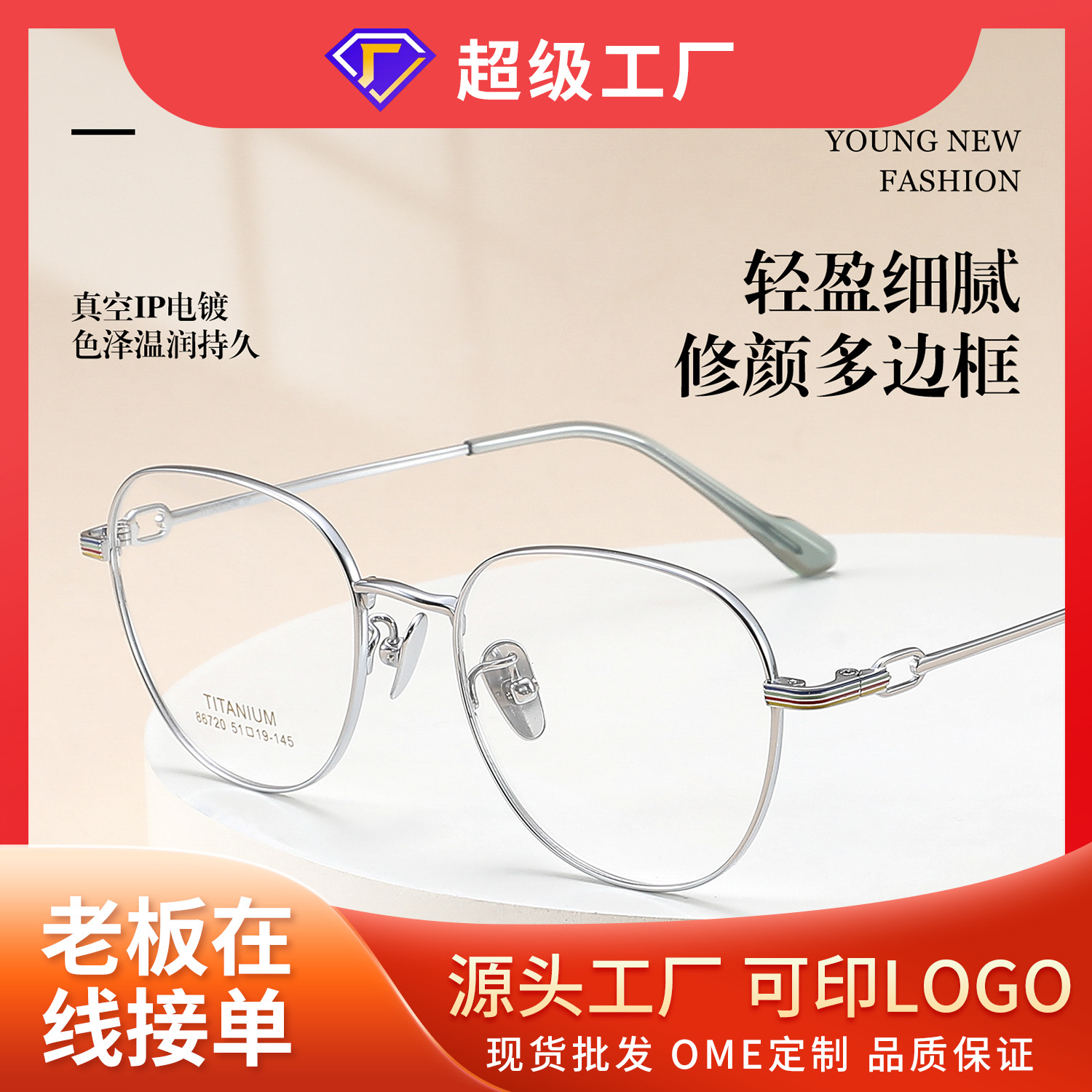 百搭纯钛眼镜框架多边形大脸显气质纯钛镜架工厂源头批发大框8669