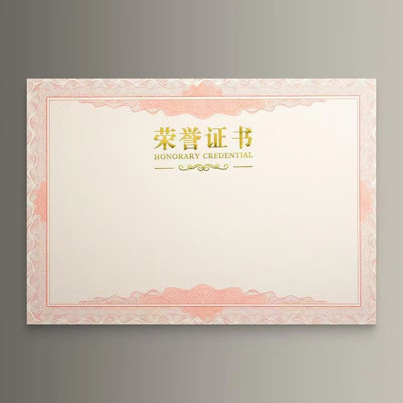荣誉证书内页批发证书内芯120g双胶纸花边底纹烫金字奖状证书内芯