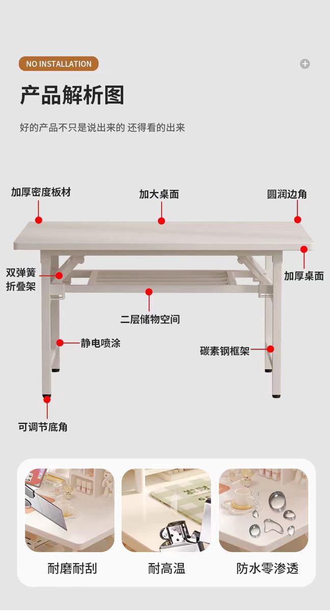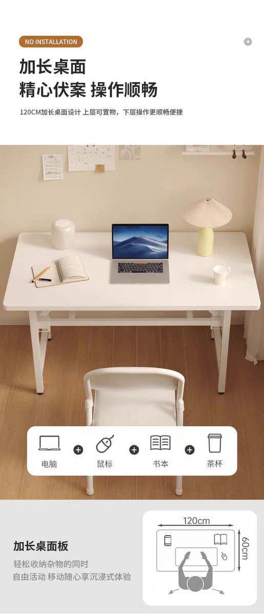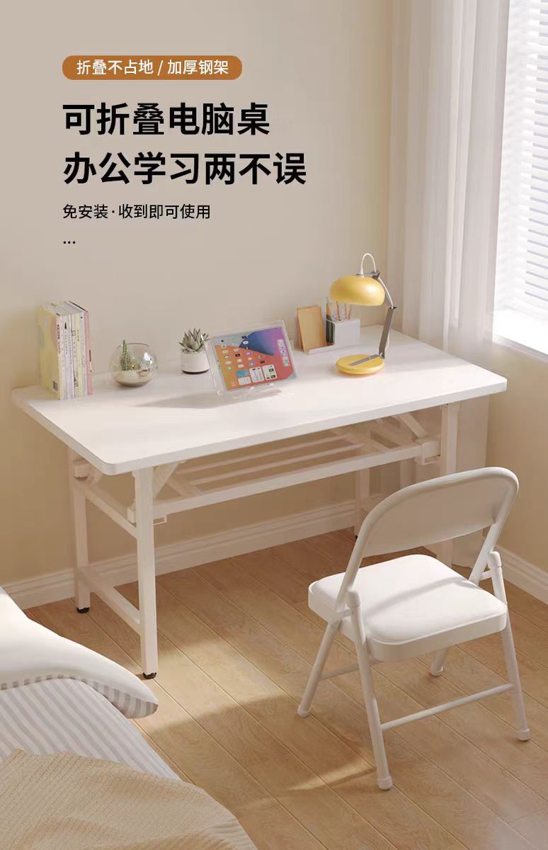 厂家批发可折叠电脑桌台式书桌办公桌卧室奶油风学习桌办公写字桌