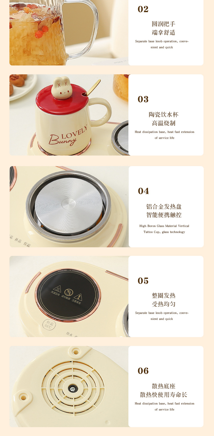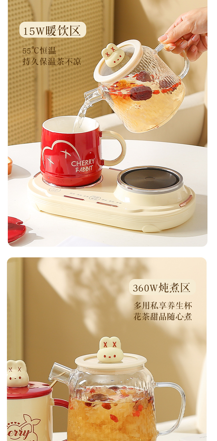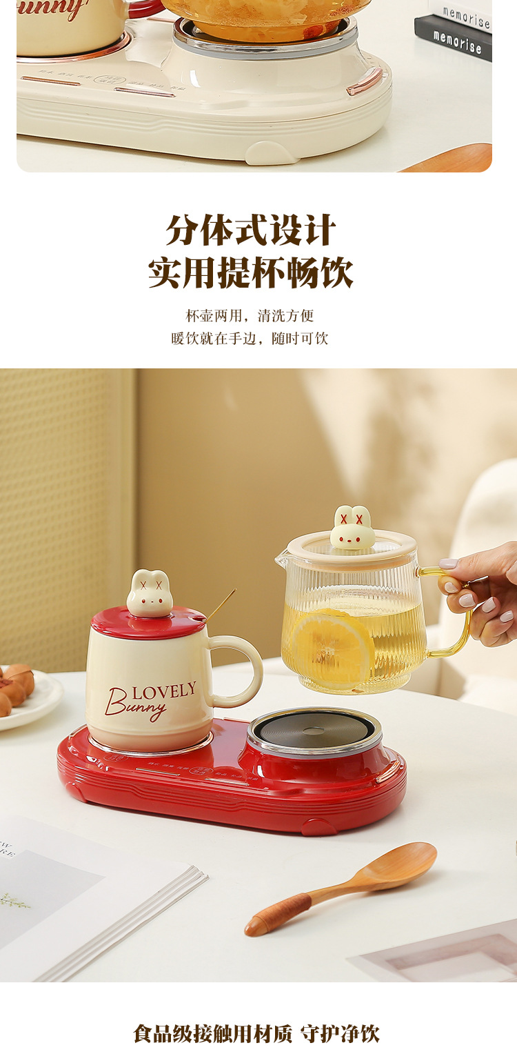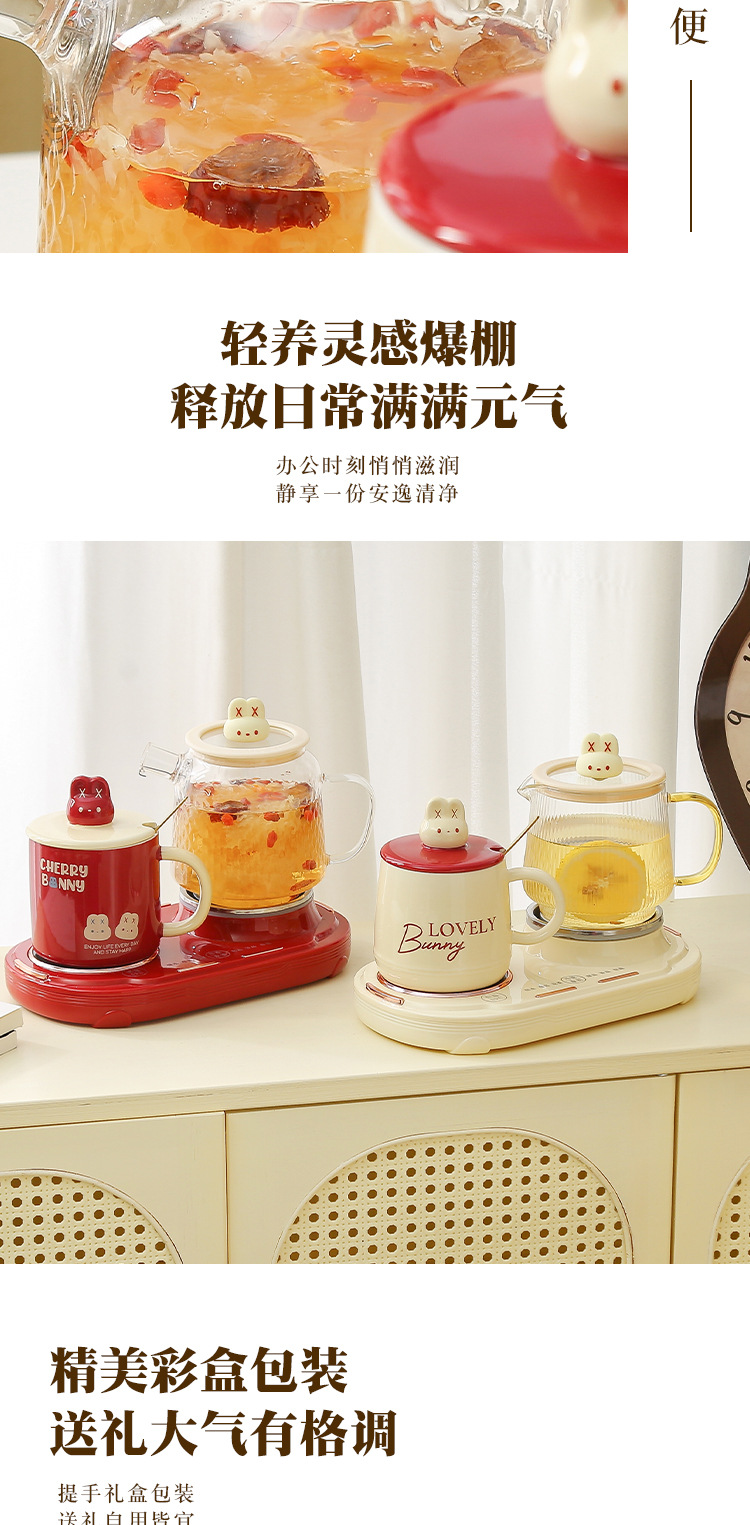樱桃兔分体式电热杯智能女温控便携式小型家用烧水耐高温电热水杯