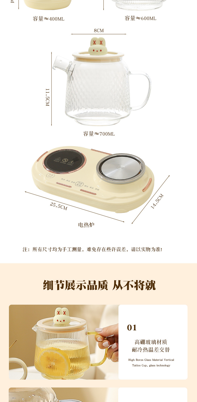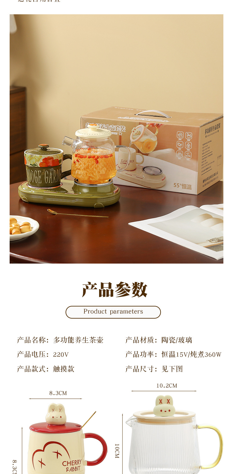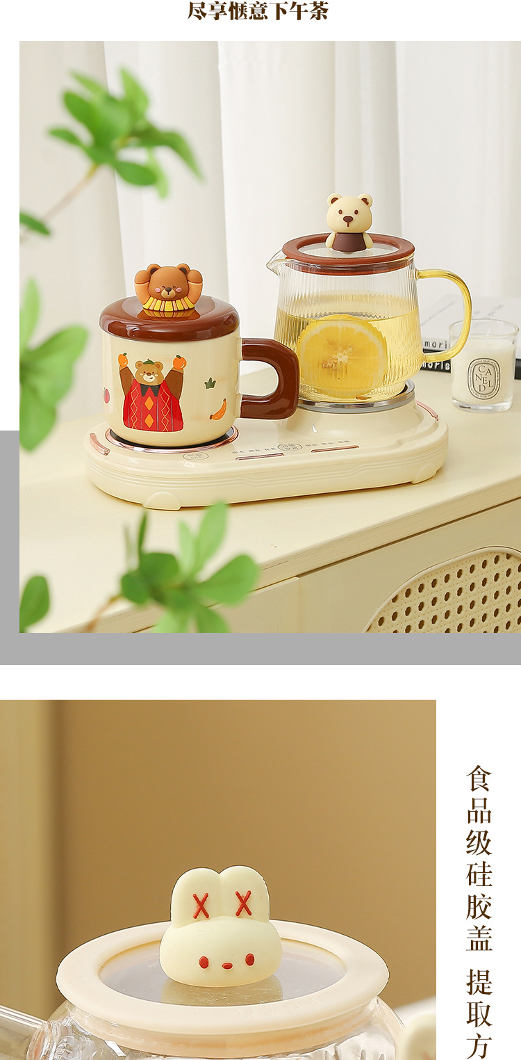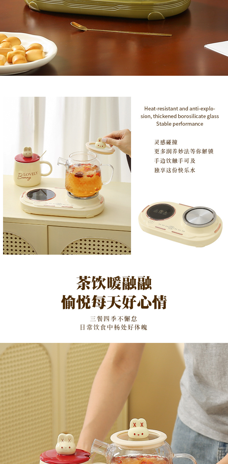 樱桃兔分体式电热杯智能女温控便携式小型家用烧水耐高温电热水杯