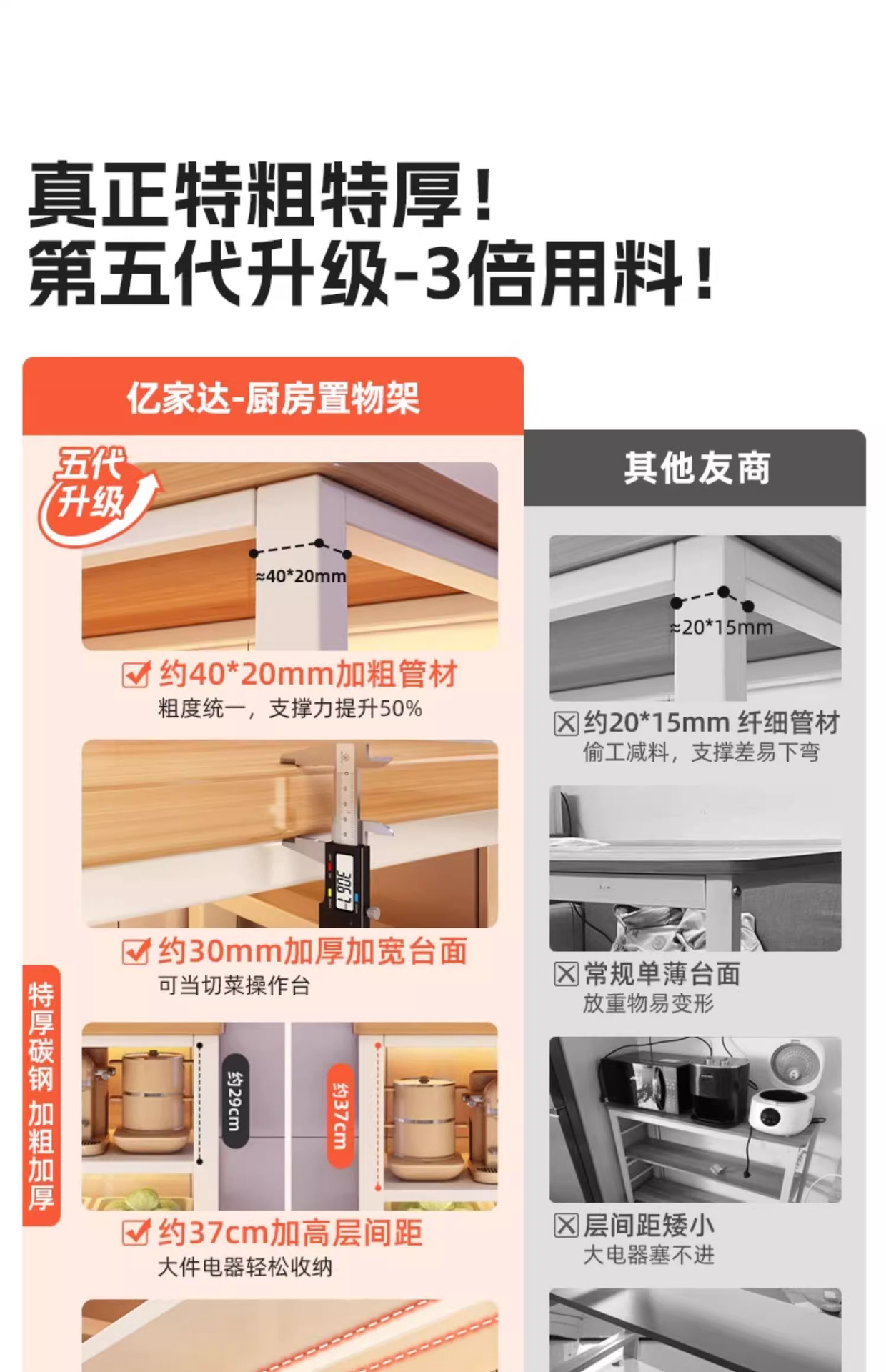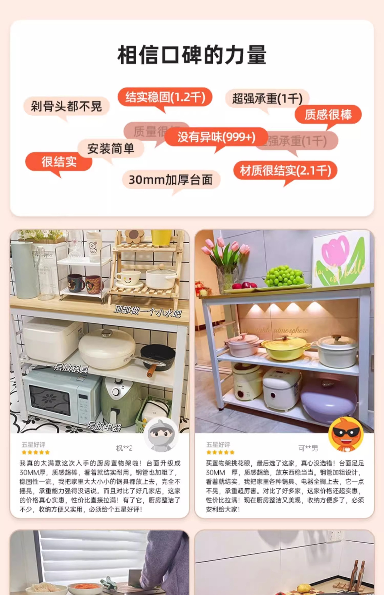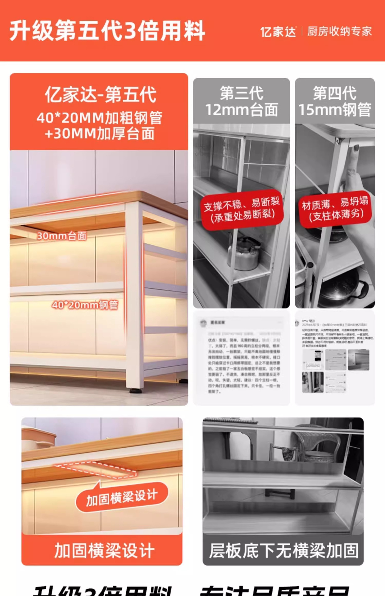 厨房置物架落地多层工作台家用切菜桌多功能橱柜储物架锅具收纳架