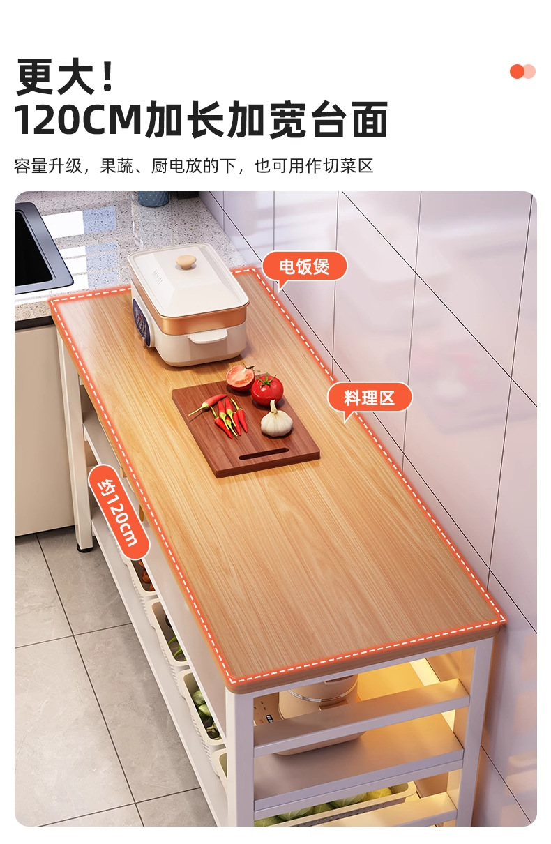 厨房置物架落地多功能切菜桌长条备餐工作台微波炉锅具收纳窄边柜