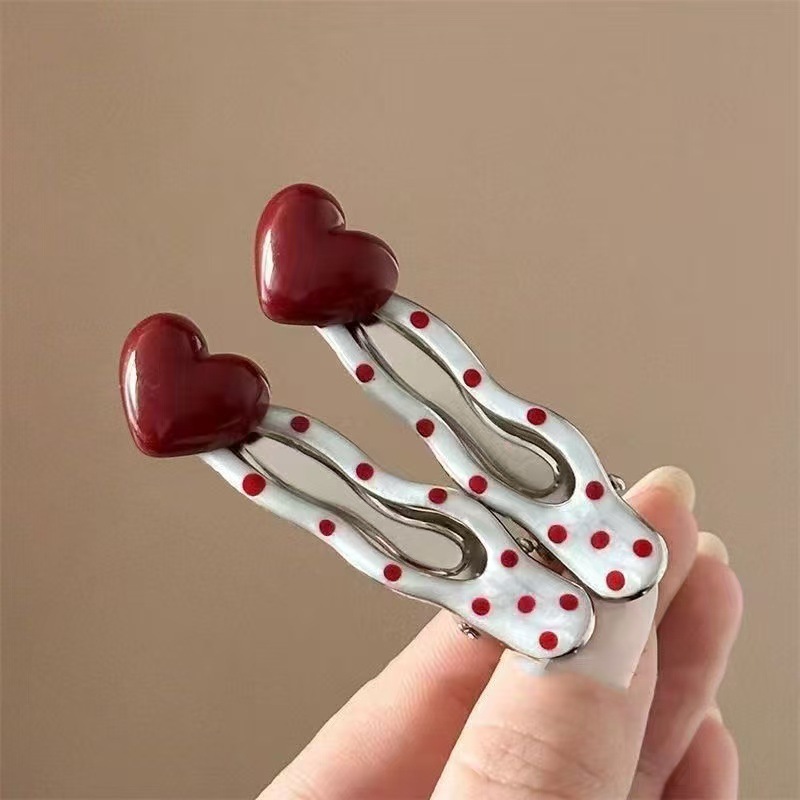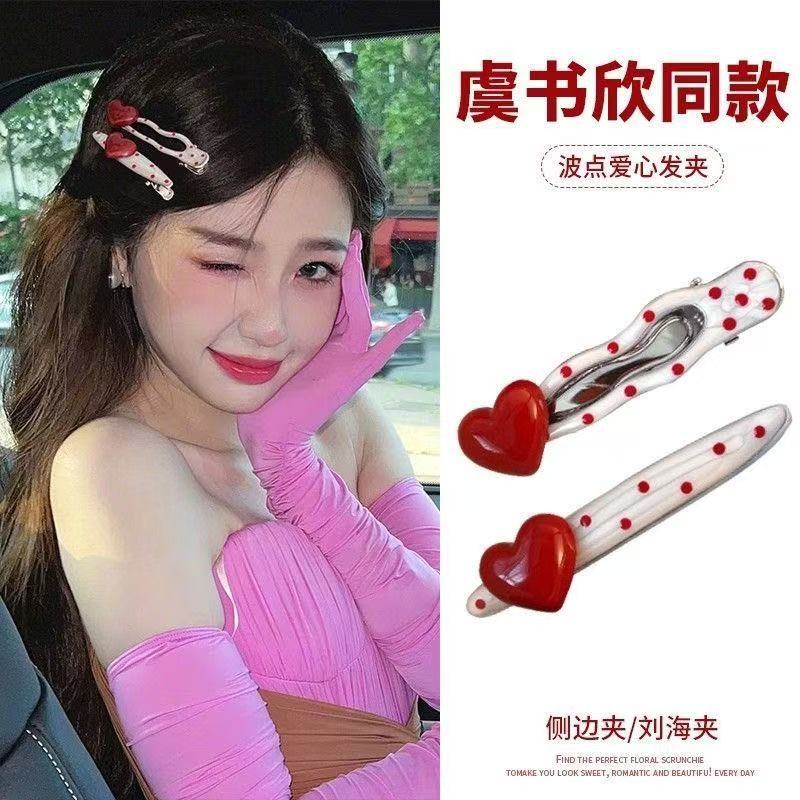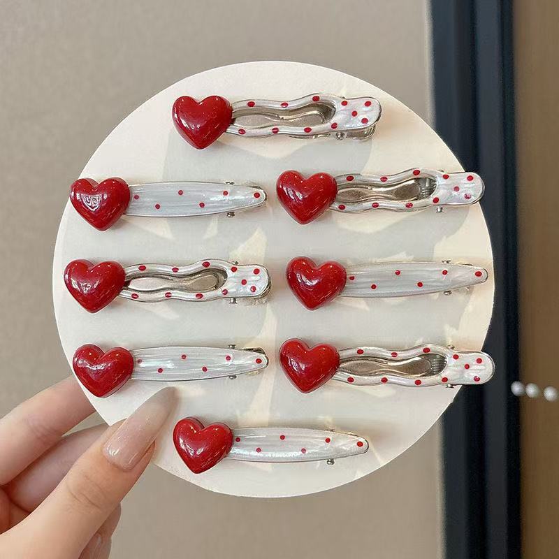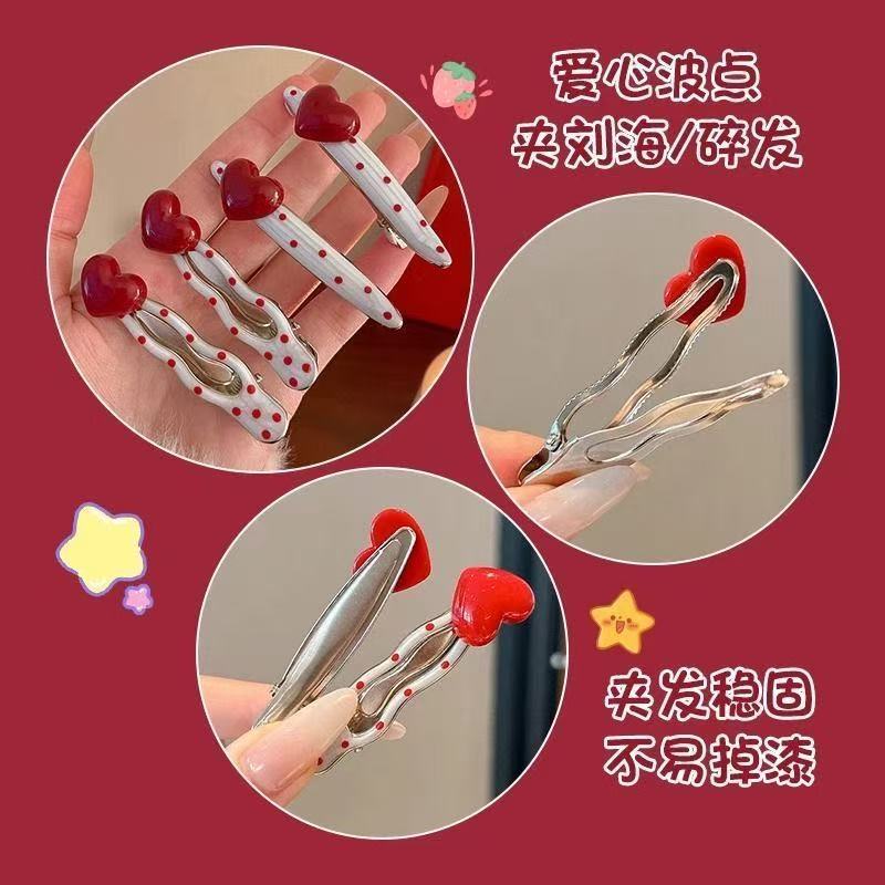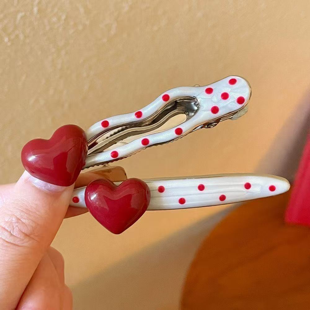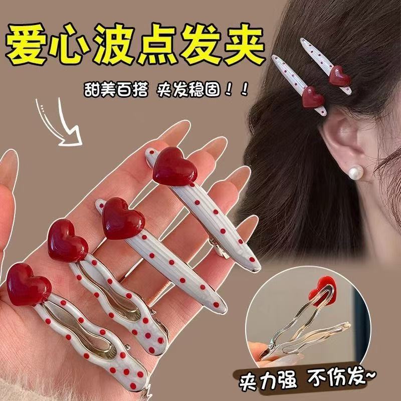 红色爱心鸭嘴夹边夹女高级感复古百搭碎发刘海侧边夹子发卡一字夹