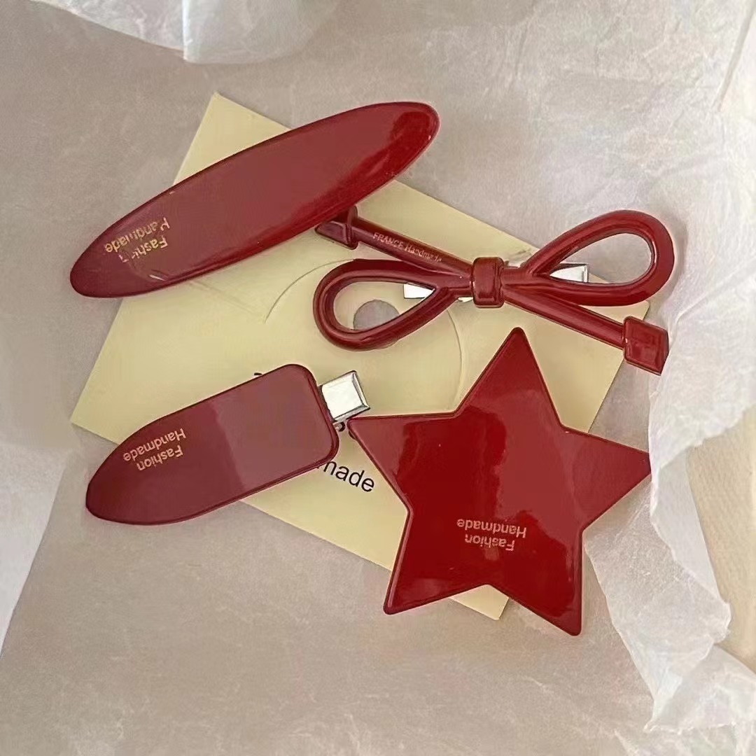 新年の赤い毛の星のヘアピンの蝶結びの前髪bbクリップのサイドの割れ目のヘアピンのクリスマスの髪飾り