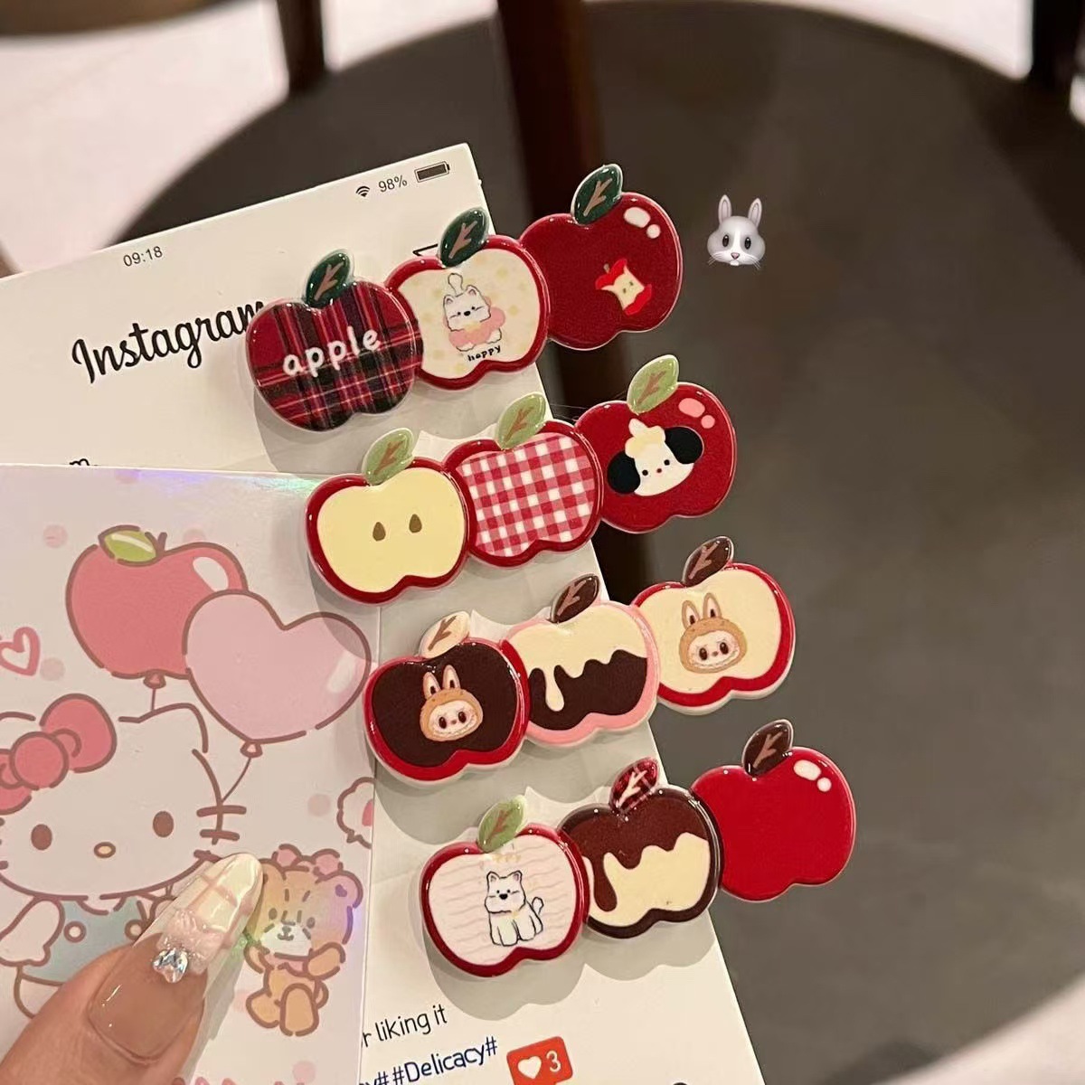かわいいアニメのリンゴのヘアピン秋冬の少女の心のカモの口は髪を砕きます。