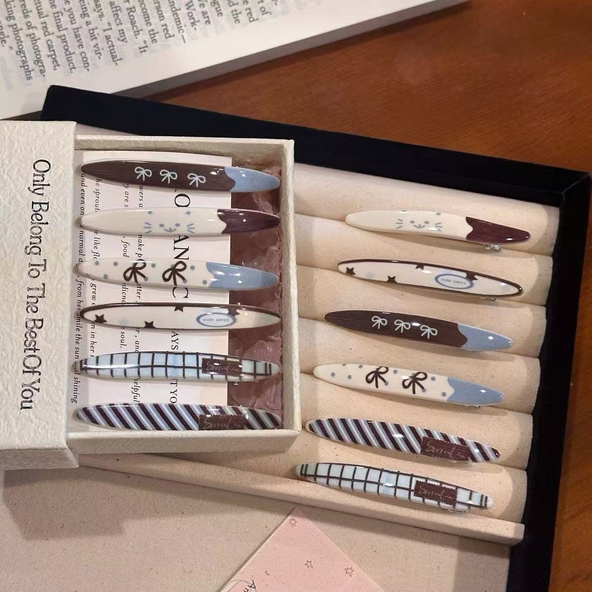 盐系少女猫咪蓝咖色系条纹发夹百搭少女侧边刘海夹发卡夹子头饰