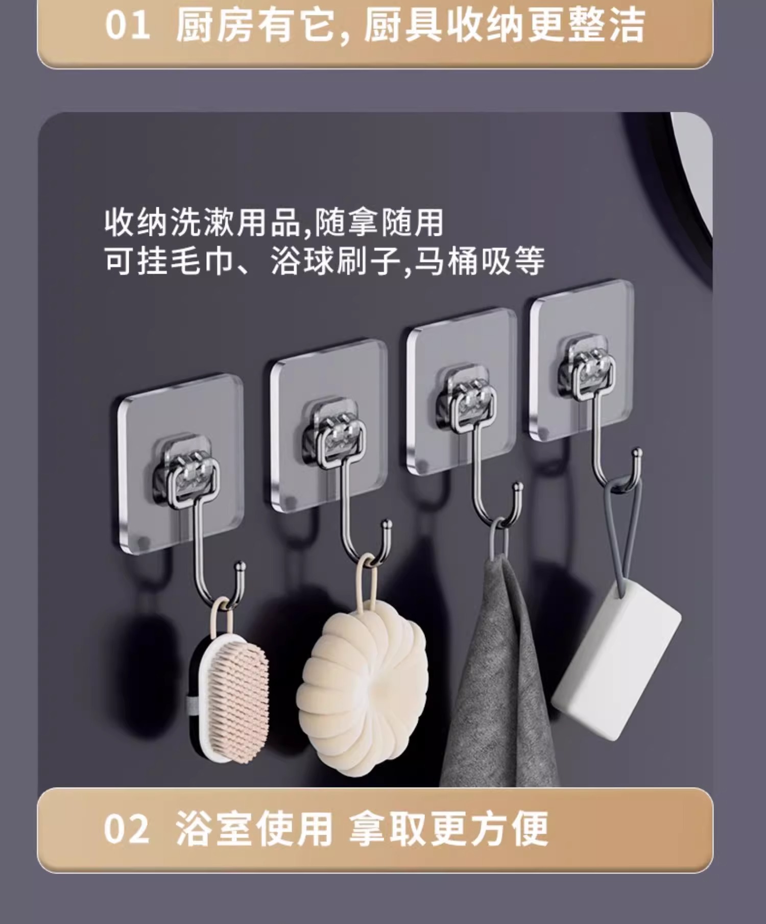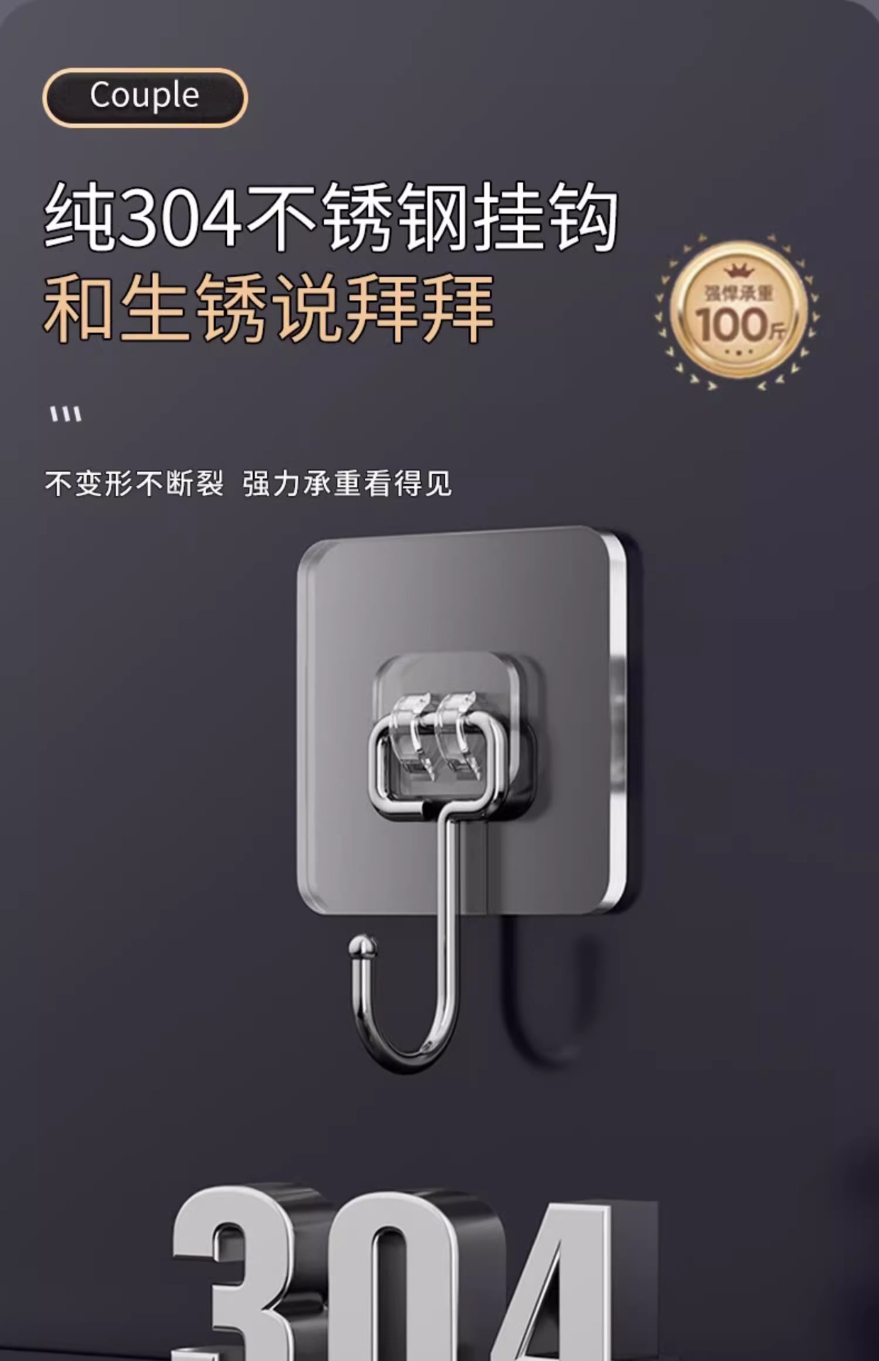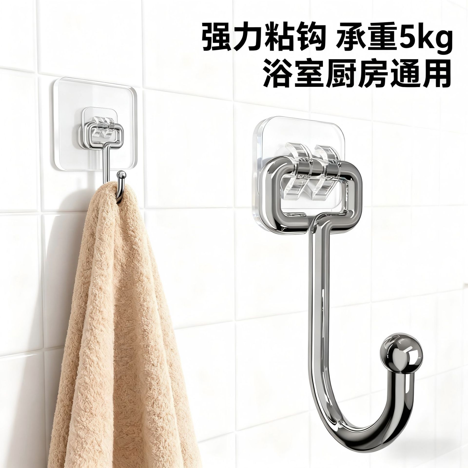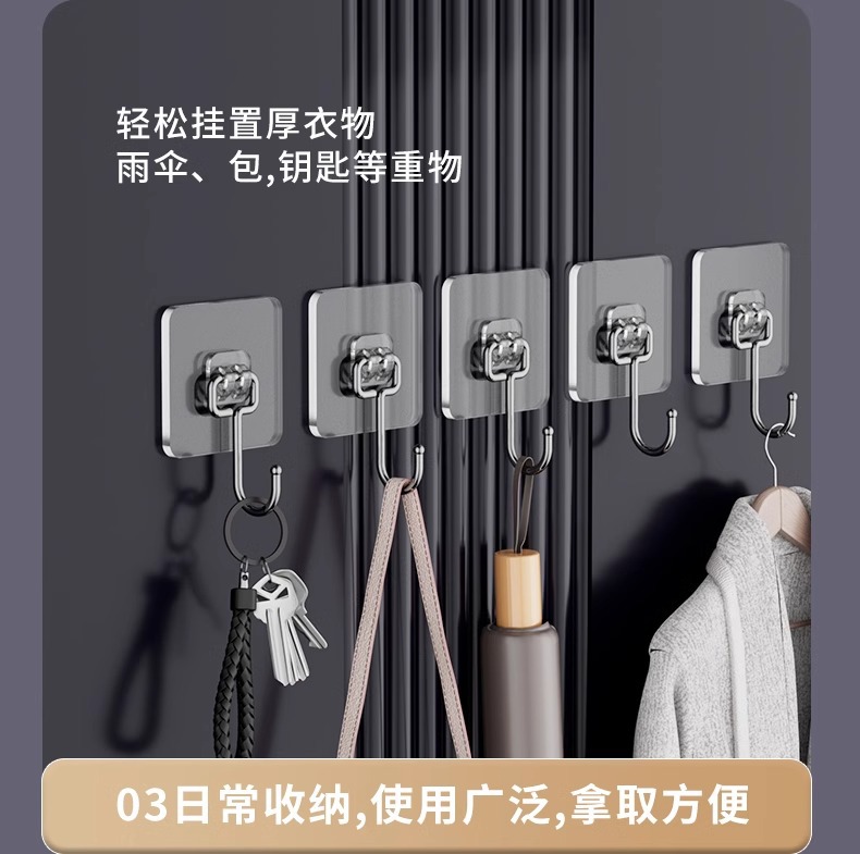 挂钩强力粘胶免打孔强力承重厨房墙壁贴重物无痕不锈钢透明粘钩子