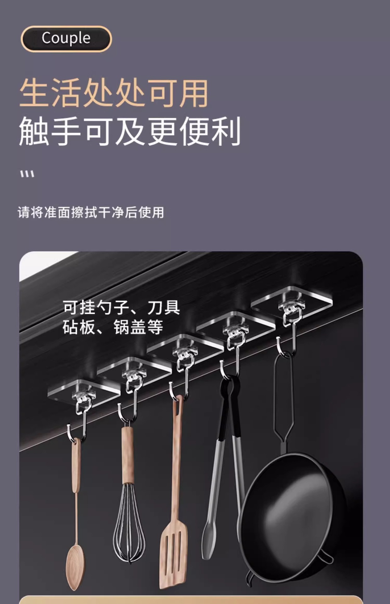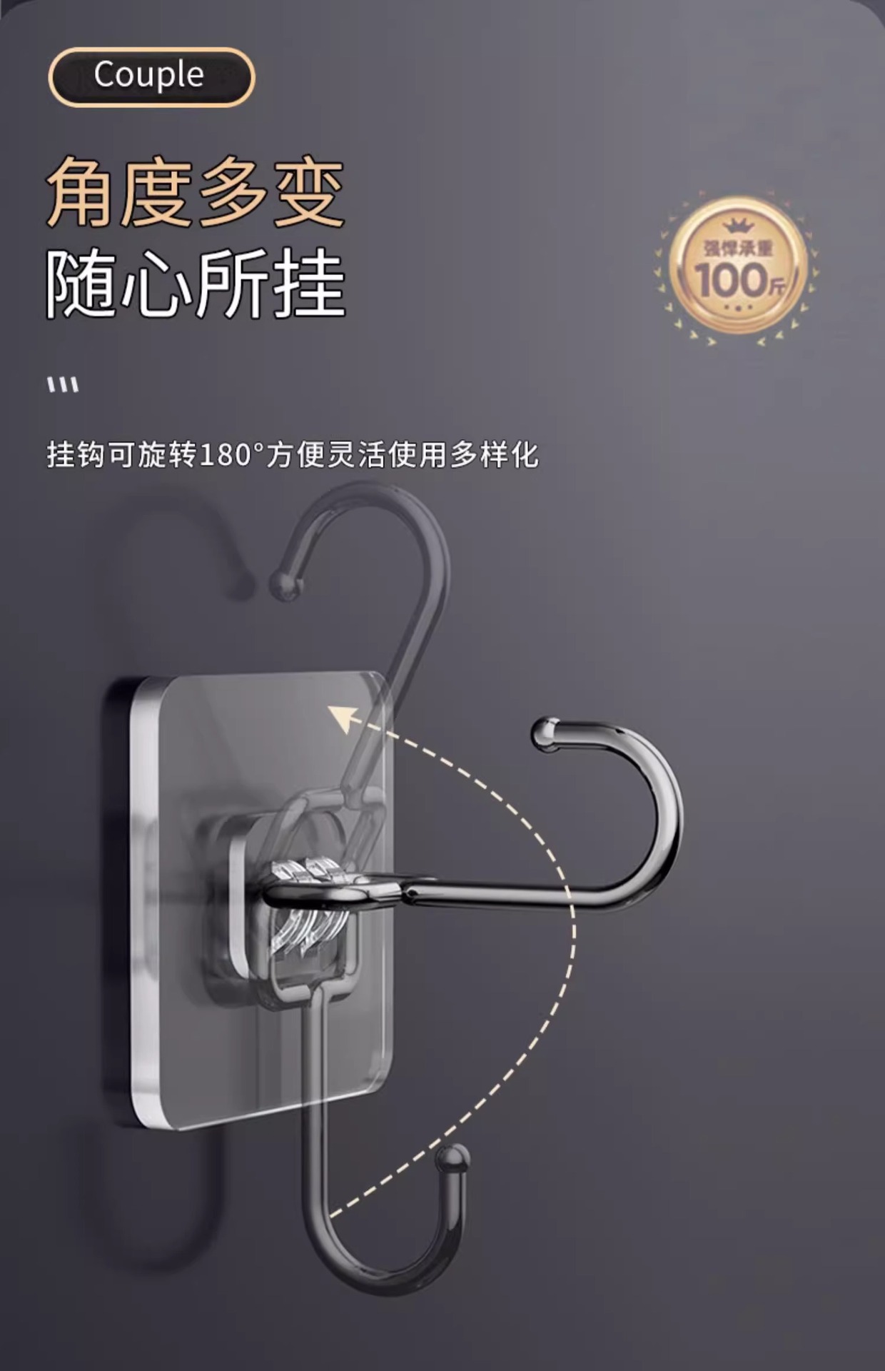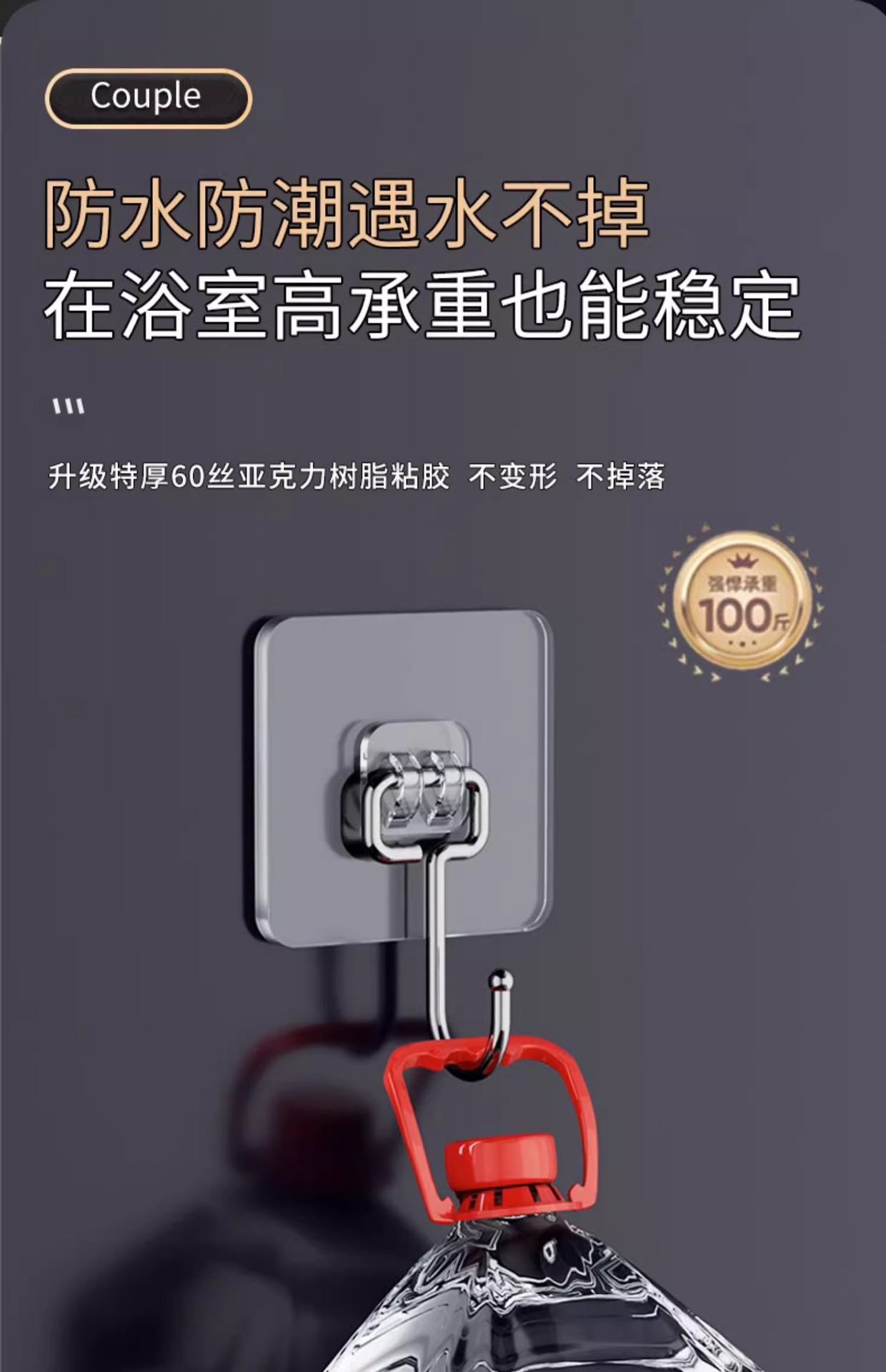 挂钩强力粘胶免打孔强力承重厨房墙壁贴重物无痕不锈钢透明粘钩子