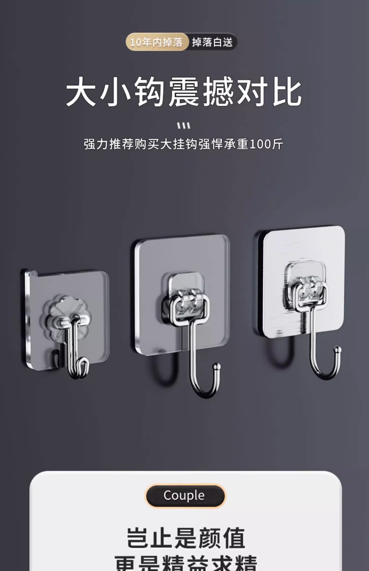 颜色 进口胶贴+不锈钢实心大挂钩5个装(特价促销),进口胶贴+不锈钢实心加大挂钩5个装(特价促销)