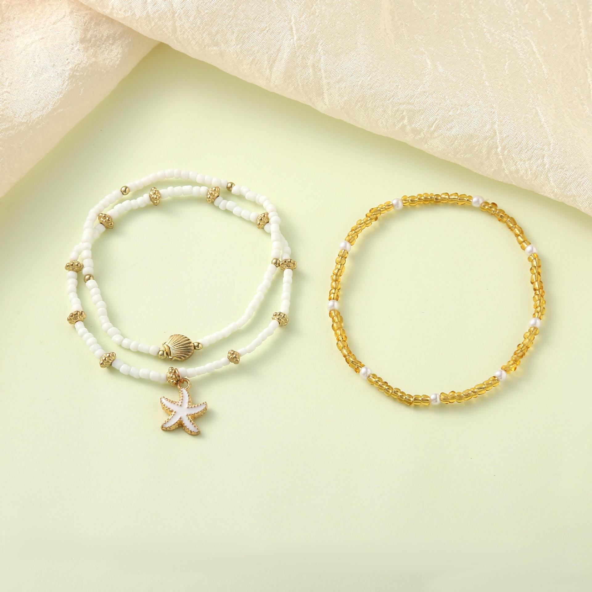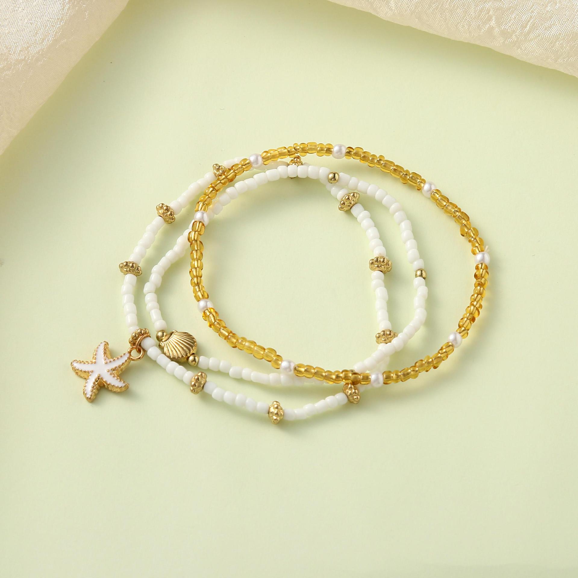 国境を越えたボヘミアン海洋風合金海星ホタテペンダント真珠米珠弾力女式足鎖3点セット