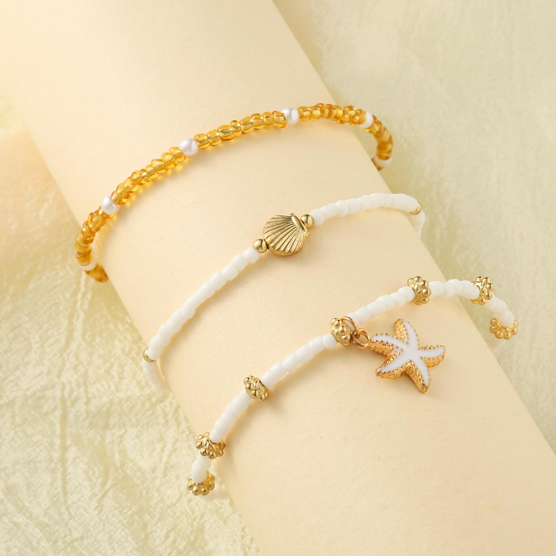 新しいクロスボーダー甘い女の子ライスビーズ織りブレスレット夏多用途ビーチシェルヒトデブレスレットパール女性