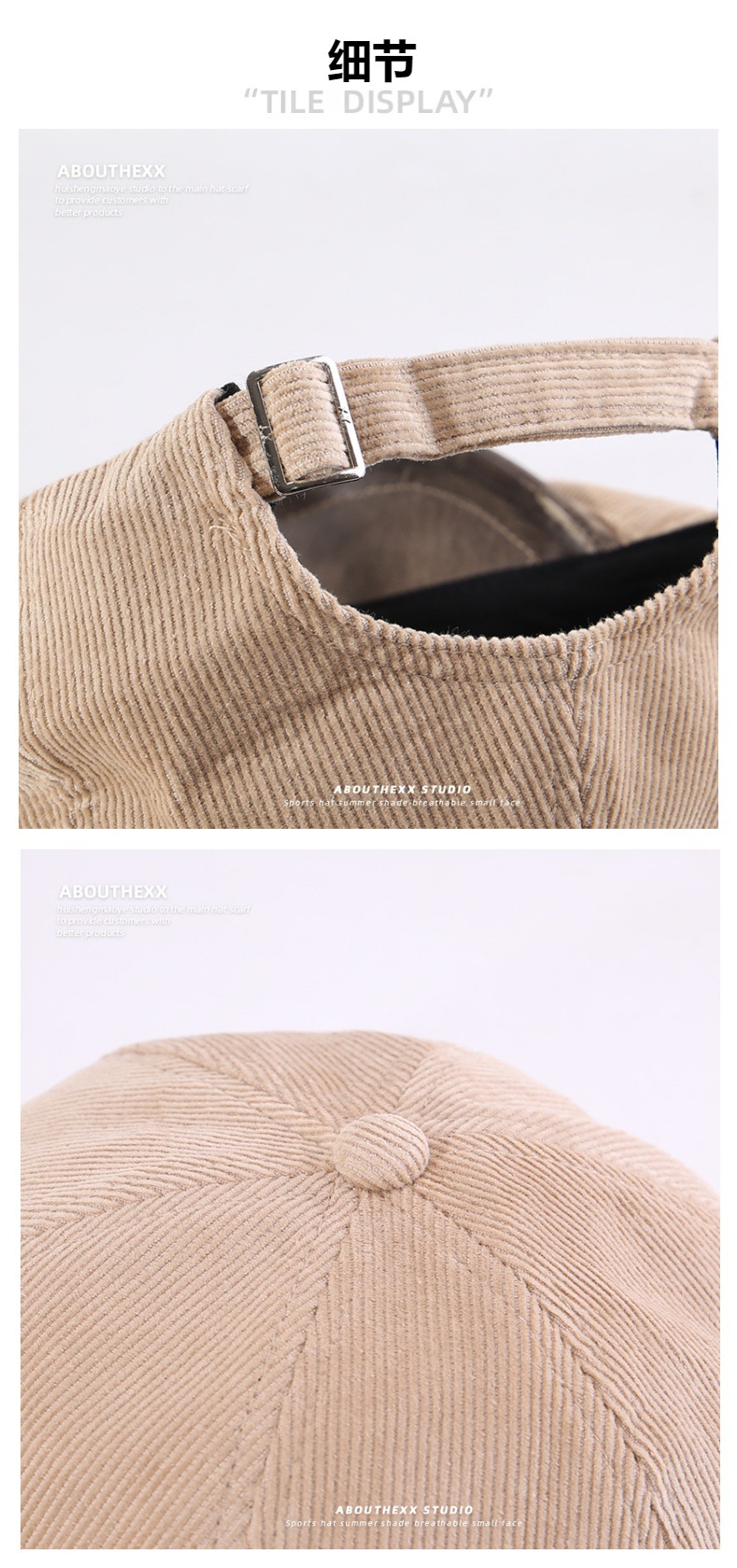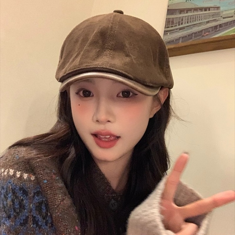 美式街头英伦风灯芯绒前进帽子女秋冬复古百搭大头围显脸小贝雷帽