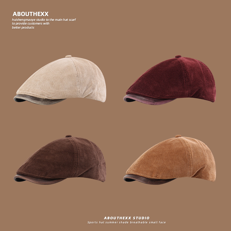 秋冬レトロコーデュロイ前進帽ファッション英倫風報童帽日系街頭文芸鴨舌帽子男女